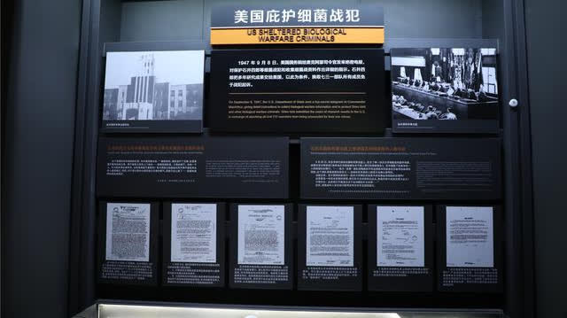 在位於平房區的侵華日軍第七三一部隊罪證陳列館人體實驗展區,一張張英文人體實驗報告書複印件,連成一面牆。這些報告詳細地記載了731部隊進行人體實驗的情況,包括解剖數據、彩色解剖圖、器官感染路徑和感染程度等記錄,是能夠證明731部隊進行人體實驗的直接證據。