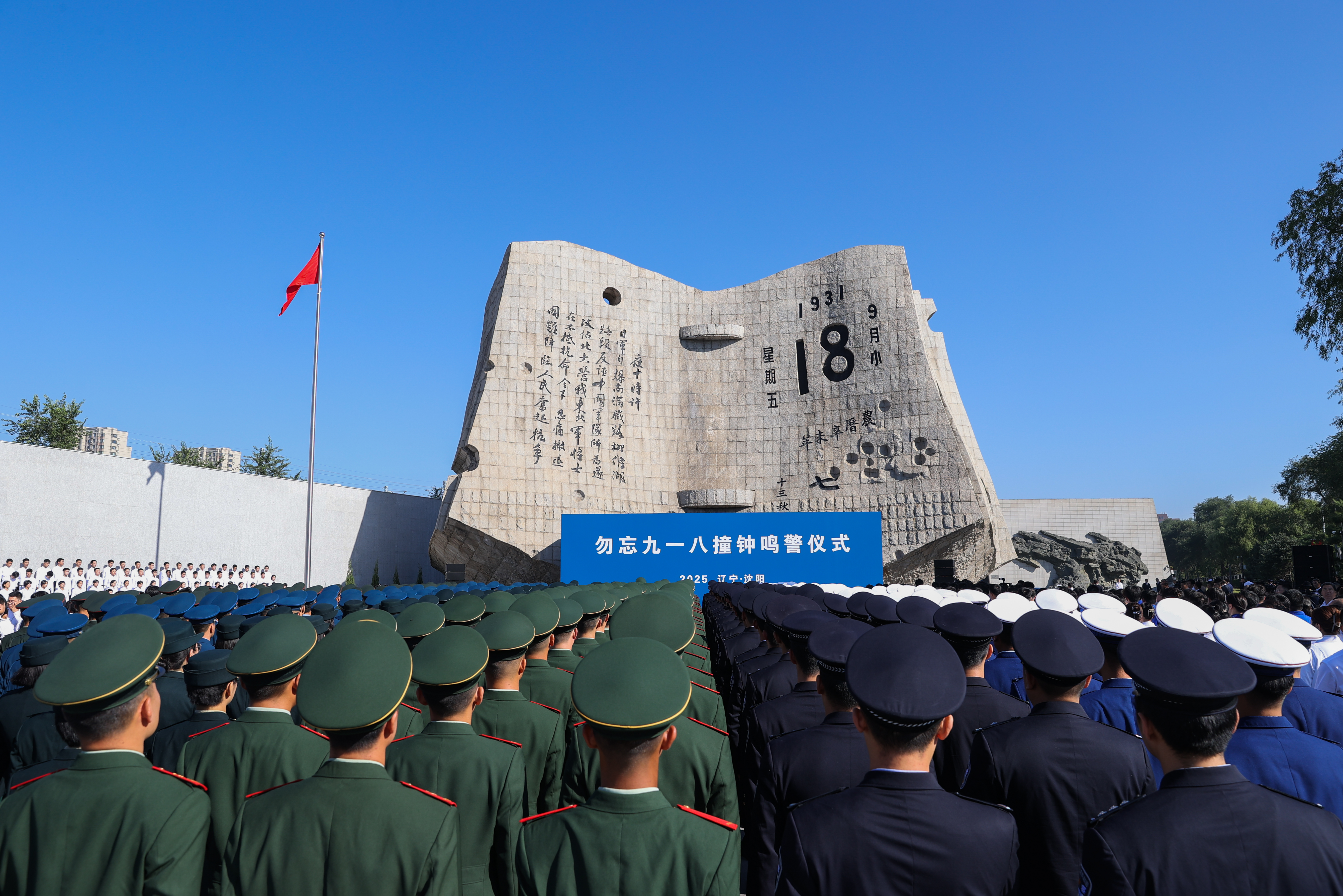 (大公文匯網記者 于珈琳 瀋陽報道)今年是九一八事變94周年。9月18日上午,「勿忘九一八撞鐘鳴警儀式」在瀋陽「九·一八」歷史博物館殘歷碑廣場舉行。來自遼寧的政府代表、老戰士代表、部隊代表、企業代表及學生代表等各界人士共同參與儀式。現場,代表中華民族14年浴血反抗日本法西斯侵略艱苦歷程的警示鐘撞響14下後,9時18分,全國百餘座城市與瀋陽一道同時拉響防空警報,主要街路的機動車停駛鳴笛,火車、輪船也將拉響汽笛,共同參與紀念活動。莊嚴、肅穆的「勿忘九一八撞鐘鳴警儀式」從「九·一八」歷史博物館這座抗戰文化地標走向全國,警示民眾銘記歷史、勿忘國恥。