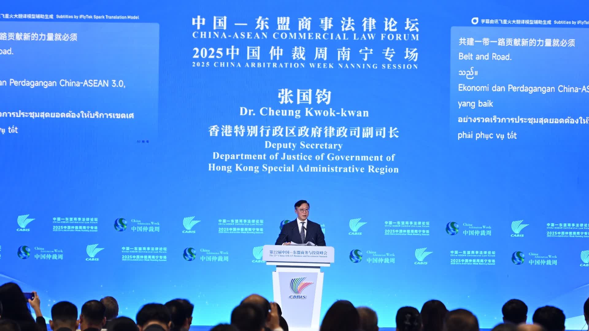 第三,安全。香港基本法保障了資本和基金的自由流通,所有的投資、商業活動也受到嚴格的監管和保障。我們也設立守正創新的監管框架,確保新興業務能有序健康的發展。第四,可信。可信的意思是香港司法機關在基本法下擁有獨立的審判權,包括終審權。根據倫敦瑪麗皇后大學的2025年《國際仲裁調查》,香港在全球最受歡迎的仲裁地中排名第二。第五,香港的法律制度跟內地的法律制度有緊密的銜接。到今日為止,香港特區與內地簽署了九項民商事的司法協助,涵蓋範圍很廣,例子包含對民商事法院判決的互相承認和執行,也包含對仲裁結果的承認和執行等。