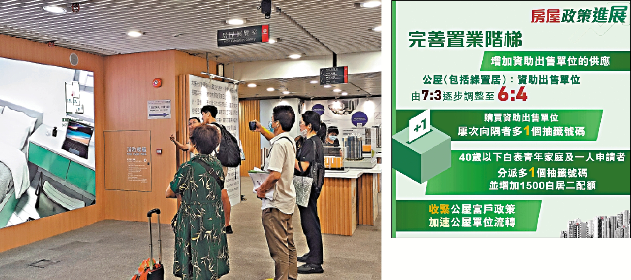 (大公報 記者 義昊)新一份施政報告提出用6招完善置業階梯措施,包括下期起推出的居屋及綠置居,將縮短轉讓年期限制至10年,以鼓勵居民向上流;並再新增1000個「白表居屋第二市場(白居二)計劃」配額等。行政長官李家超強調,房屋是施政的重中之重。長遠來說,政府希望每個人都能居住自己心儀的面積單位,亦希望向私人市場發展。