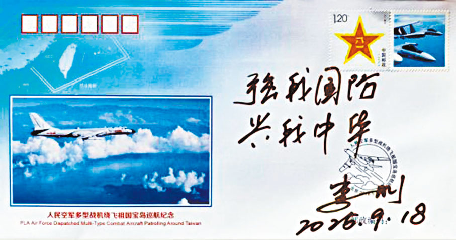在故事會上,李剛、李國恩還在一套兩張的「人民空軍多型戰機繞飛祖國寶島巡航紀念」郵封上簽名並留言,李剛的是「強我國防,興我中華」,李國恩則留下「銘記歷史,強我國防」的話語。該郵封於2018年發行,記錄了空軍轟-6K等多型戰機多次繞飛祖國寶島巡航的航跡。