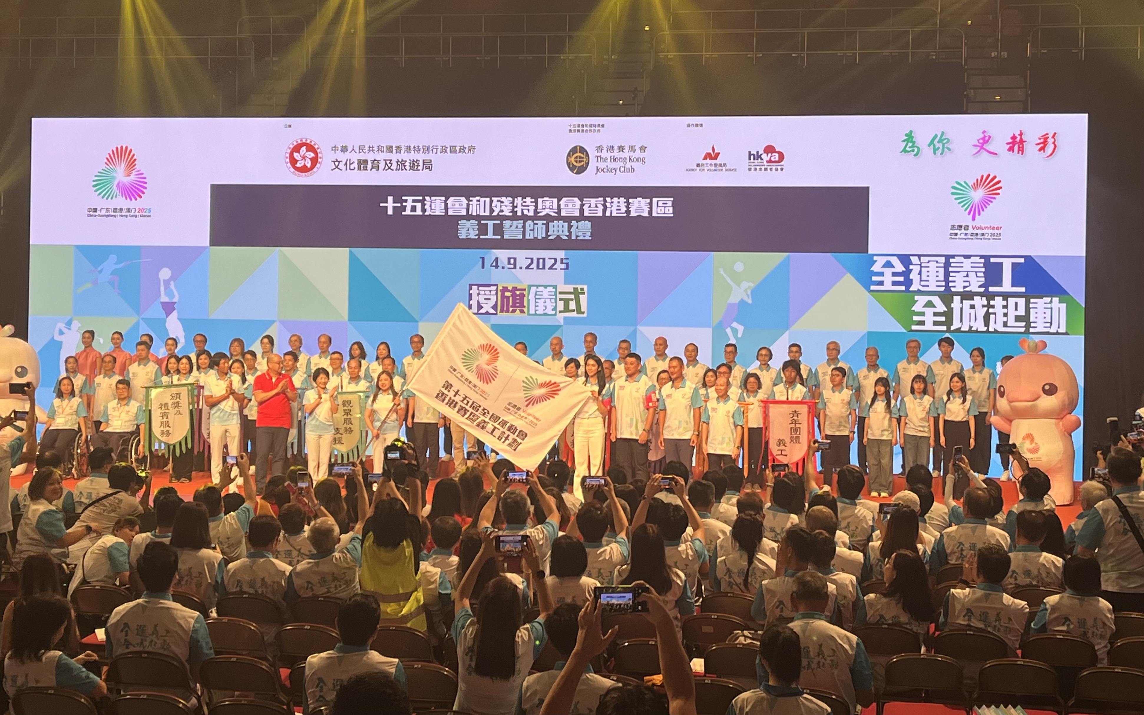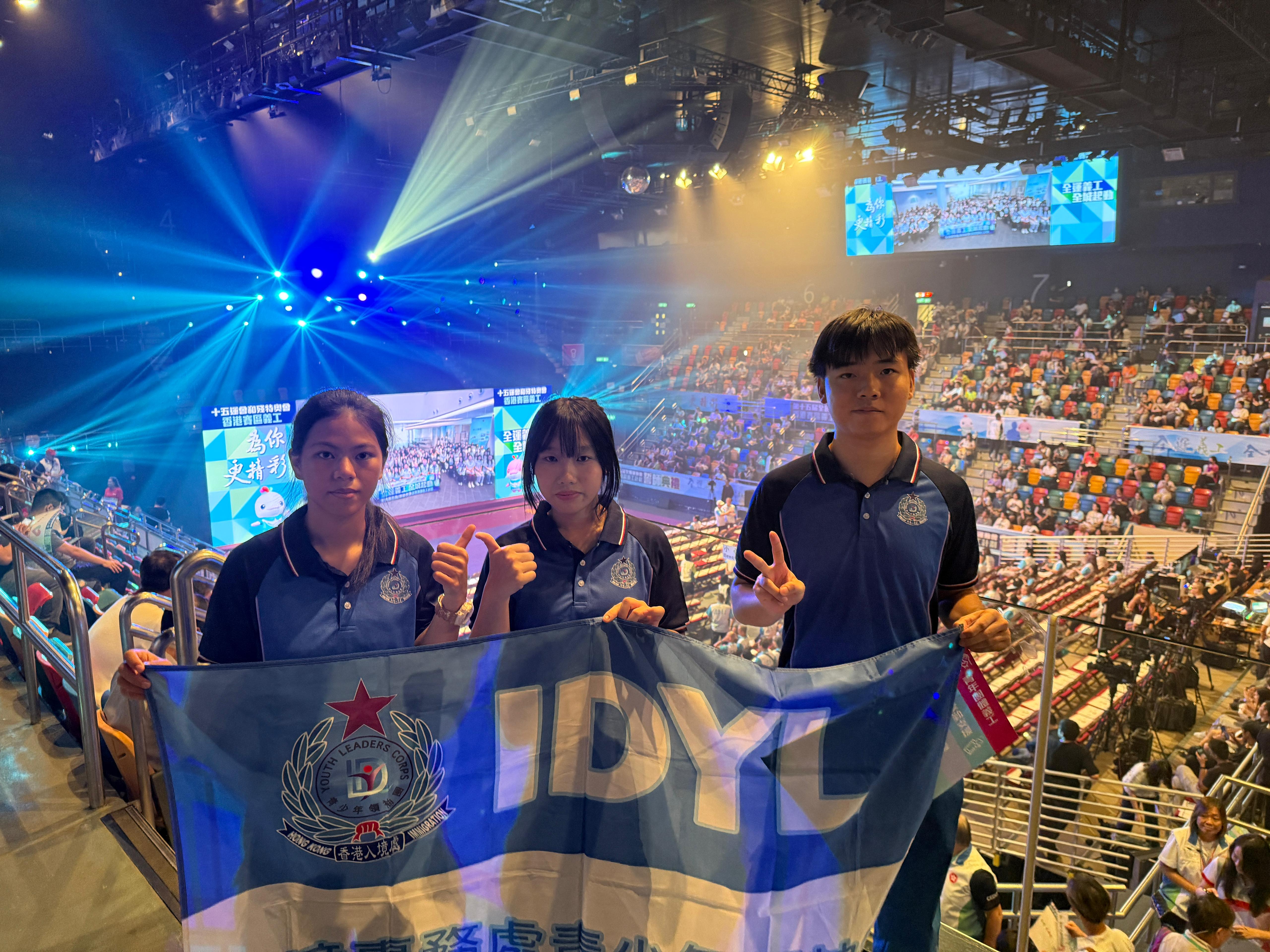 入境事務處部門代表、義工隊代表和入境事務處青少年領袖團成員代表在9月14日參加了「十五運會和殘特奧會香港賽區義工誓師典禮」,和同場超過1.6萬名義工齊聲宣誓,並且一起獲正式委任,為十五運會及殘特奧會貢獻力量!當日,文化體育及旅遊局局長羅淑佩女士亦有蒞臨致辭,勉勵各位義工用笑容、細心及專業展示香港最美好的一面。