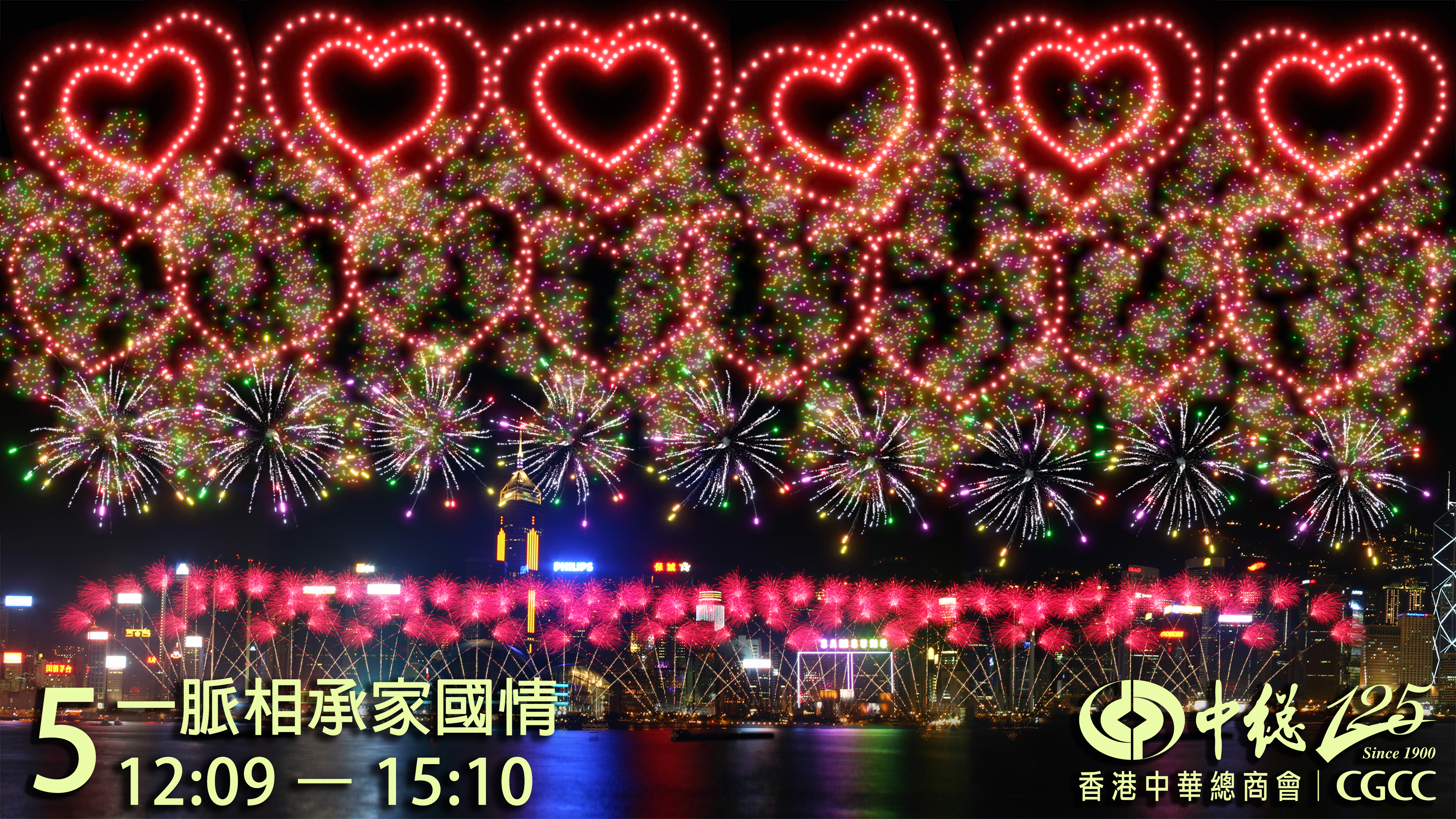 三色「心形煙花」托起紫荊花圖案!鄺美雲《我們的家》唱響時,象徵多元文化共融香江。