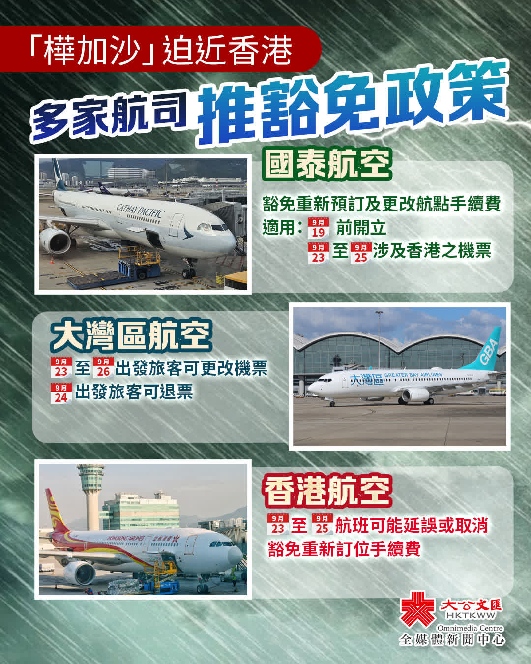 根據國泰網頁,此項特別豁免適用於所有2025年9月19日(含)前經由全球開立之國泰機票,並於2025年9月23至25日期間涉及往返香港(HKG)已確認之國泰機位。