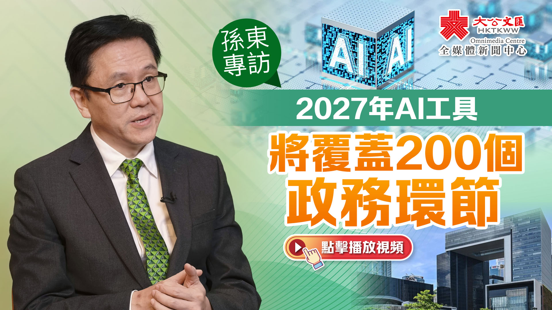 孫東指,政府計劃在2026年將AI工具覆蓋的政務環節增至100個,2027年則增至200個,「這是具體的KPI」。他特別提及「港文通」、「港話通」、「港會通」等AI工具可協助各部門進行文件撰寫、翻譯、會議紀錄摘要及智能搜索等工作,亦希望AI工具能為市民提供個人化服務。
