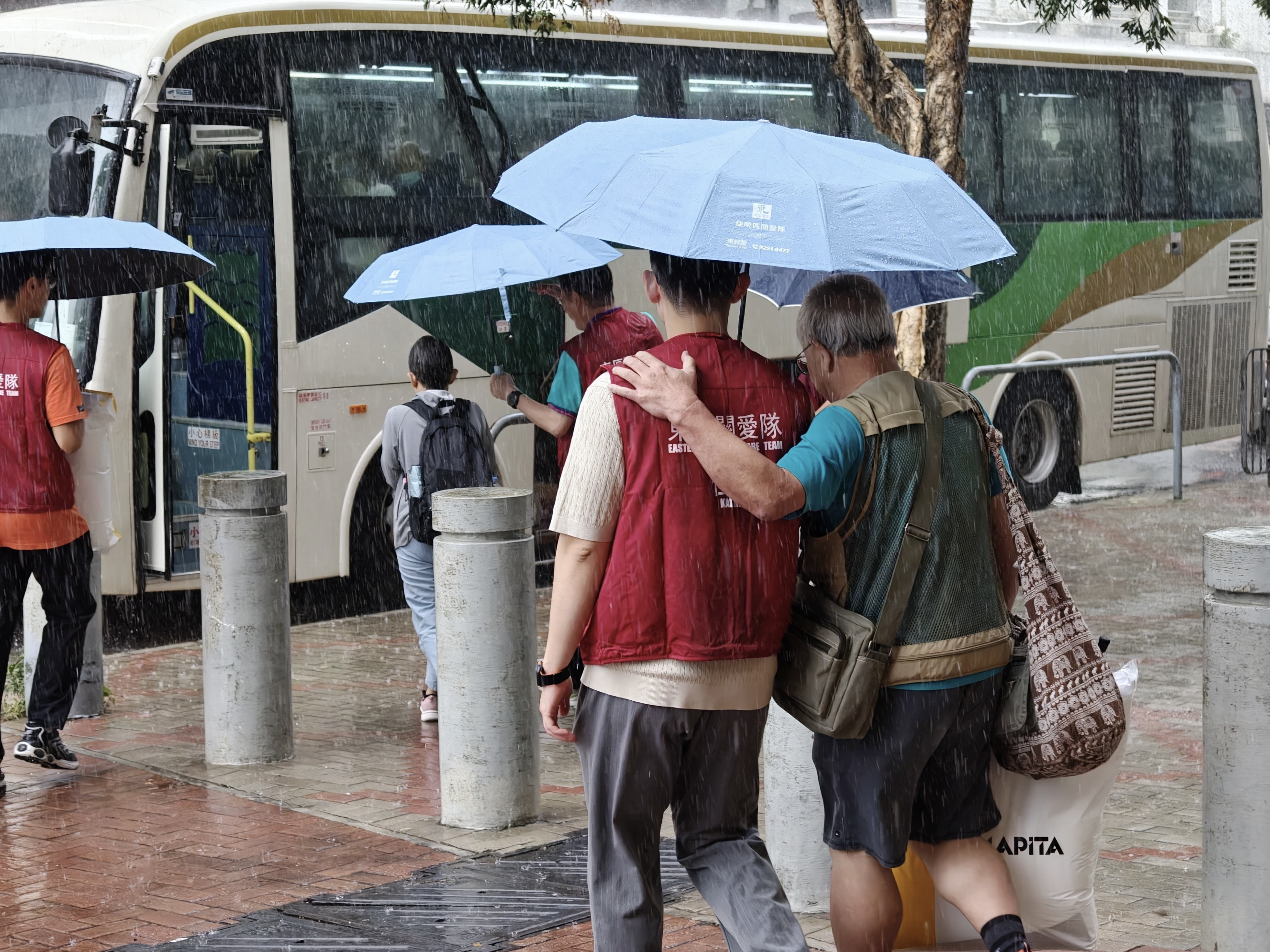 在撤離工作中,特殊個案處理是難點。梁熙回憶,有一行動不便長者的外傭因語言不通及擔心漏帶藥物而焦急,關愛隊現場迅速聯繫了醫護及社工,與其家人溝通,進行了妥善安置;另有學生及養寵物的居民擔心無法及時與家人或寵物團聚,關愛隊亦逐一協調,確保安排適切。