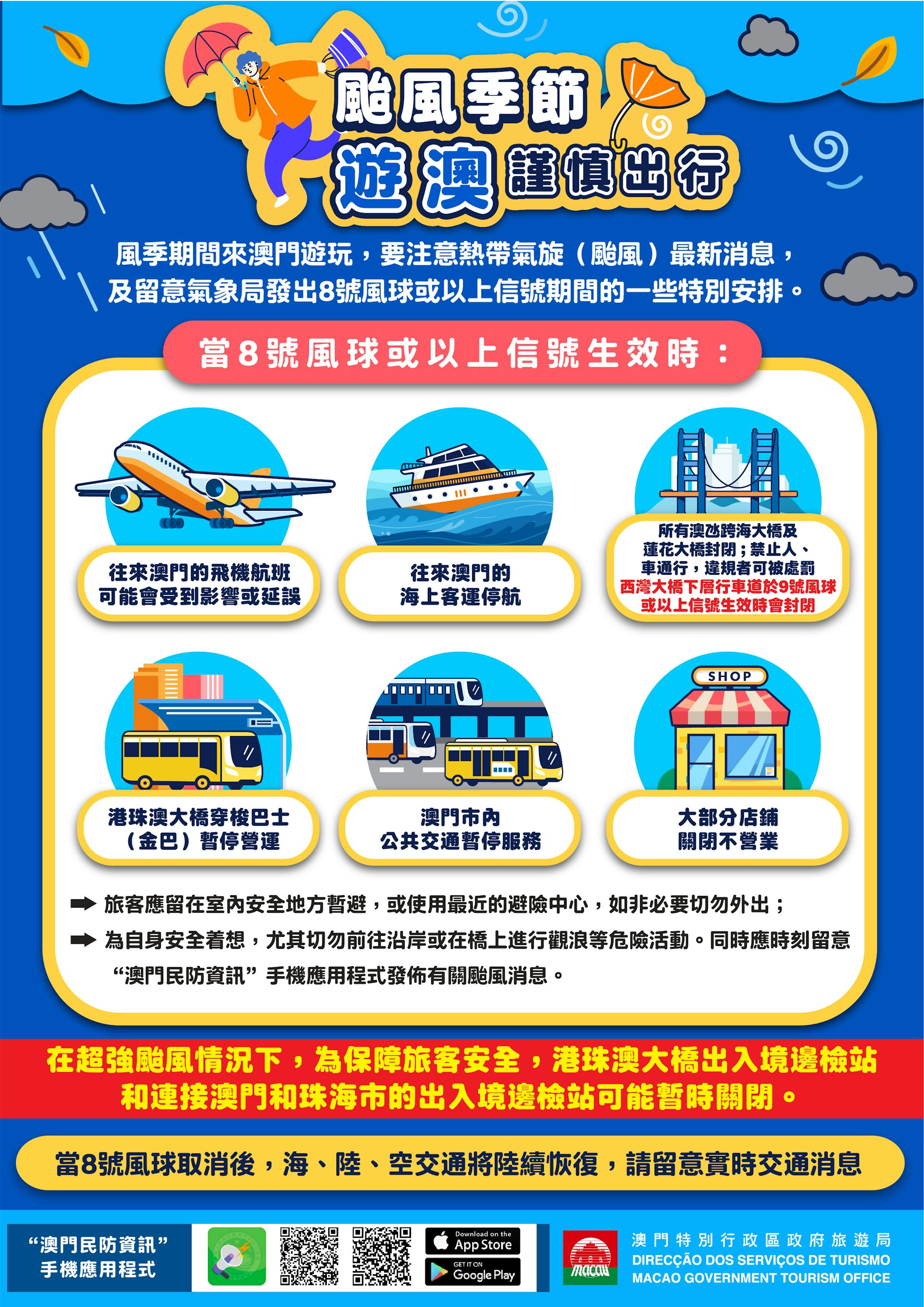 大公文匯全媒體報道,超強颱風「樺加沙」會在未來一兩日繼續增強,橫過呂宋海峽一帶並進入南海北部。澳門多個部門「超前部署」,又發放「颱風季節遊澳門謹慎出行」圖文包,提醒遊客颱風期間遊澳注意安全。