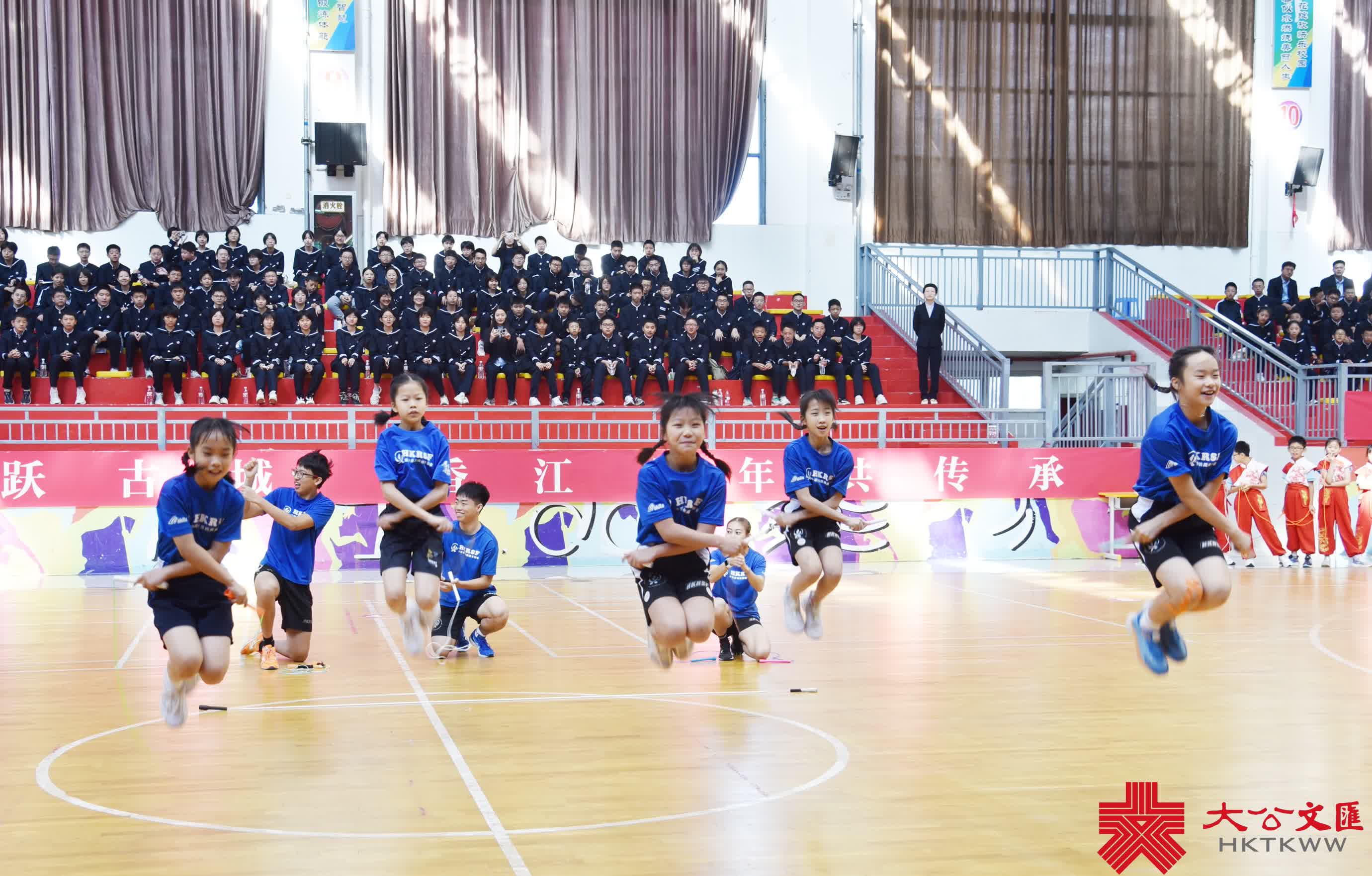 其中來自香港兩所學校的學生,用高超的技藝、默契的配合,展現了香港青少年蓬勃向上的體育精神與多元創新的跳繩風尚,贏得現場陣陣掌聲;多次在國家、省級比賽中獲得佳績的西安濱河學校跳繩社團,用速度和技巧,跳出極限,躍出風采;西安跳繩協會則通過豐富多彩、變幻莫測陝西非遺花樣跳繩,展示了跳繩在全民運動中發揮的巨大作用。