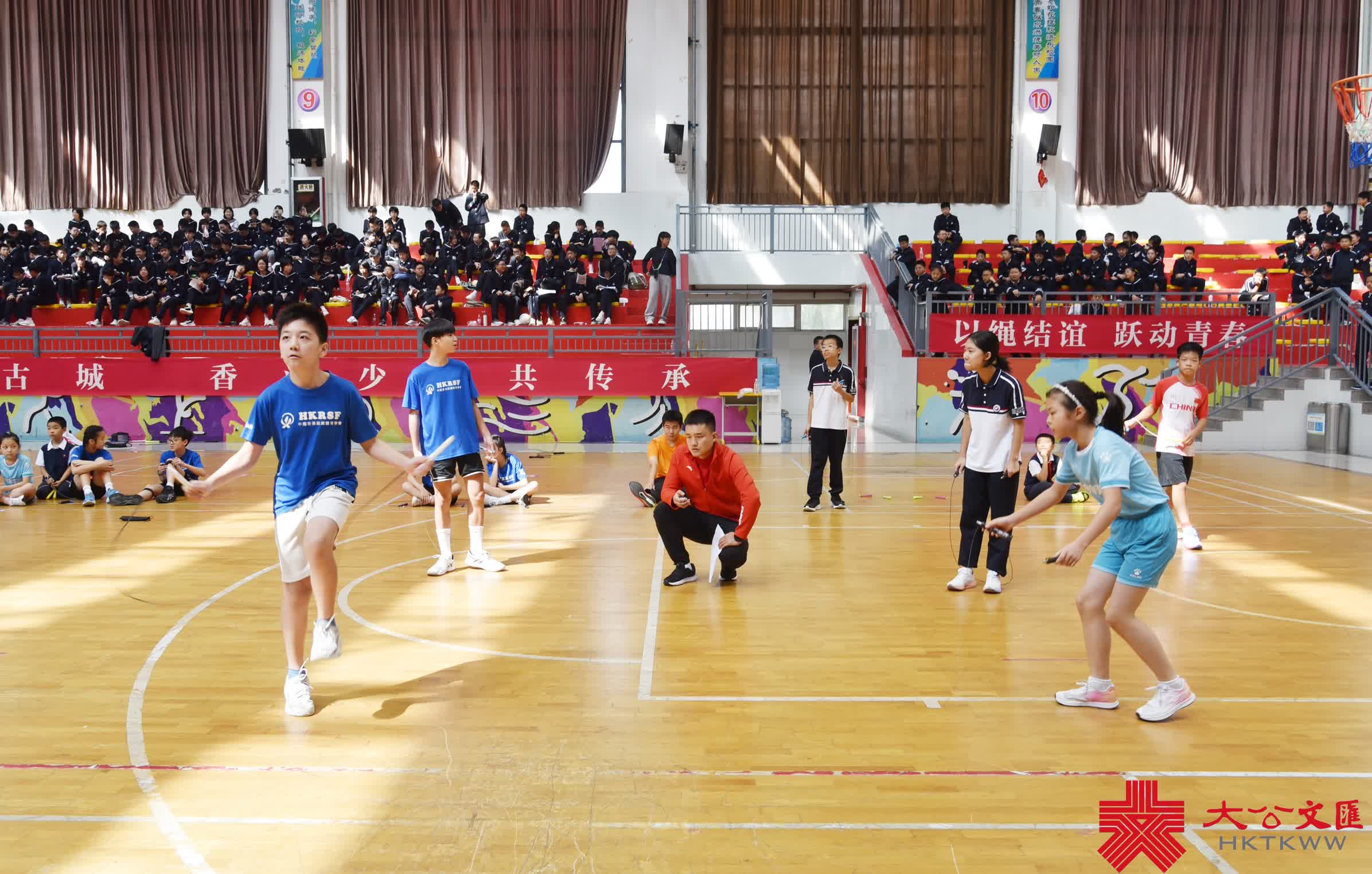 隨後,備受關注的跳繩交流友誼賽隆重登場,參與比賽的香港西安兩地中小學生分成多個小組,先後進行了個人速度交流賽、雙人速度交流賽、四人速度交流賽、10人大繩走8字速度賽,以及個人花式交流賽。繩索翻飛中,同學們身影如電,在平凡繩索划出的非凡弧線中,解鎖了一場熱血沸騰的視覺盛宴。