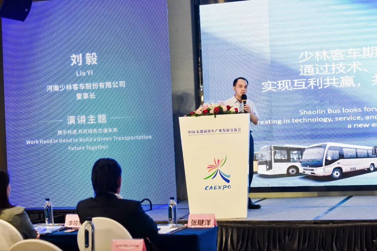 9月19日,在第22屆中國-東盟博覽會期間,「中國-東盟商用車產業交流會」於南寧K國際酒店舉辦,少林客車董事長劉毅受邀發表《數智賦能 創新領航——以數智化商用車解決方案激活市場新動能》主題演講,深度分享少林客車在綠色交通領域的實踐與願景。會上,少林客車憑藉卓越的產品實力與領先的新能源技術一舉斬獲 「東盟之星最佳新能源客車」 與 「東盟之星最佳新能源公交客車」 兩項重量級榮譽,成為本屆交流會備受矚目的焦點。