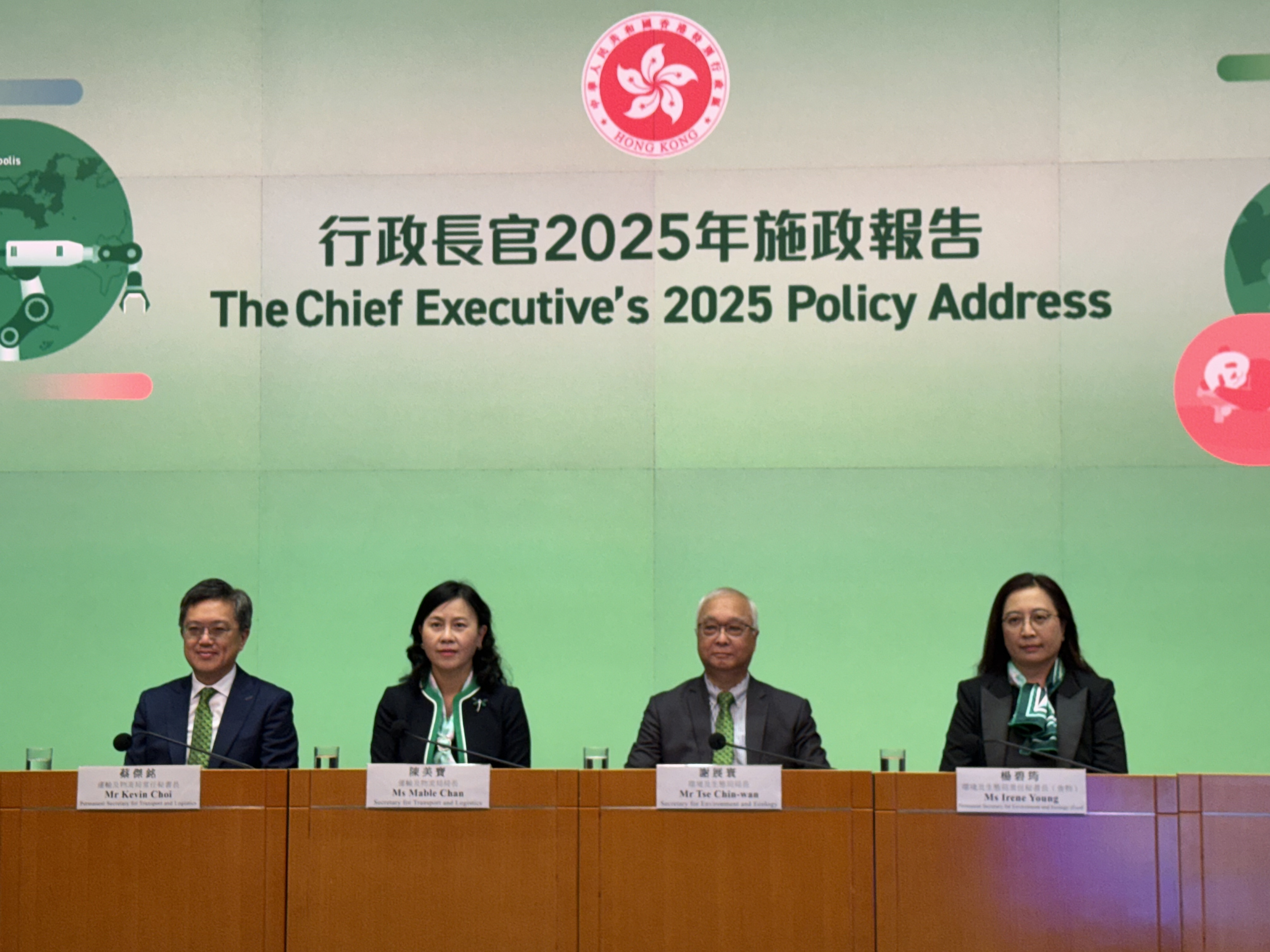 (大公文匯全媒體記者 陳子萌 報道)新一份施政報告於9月17日正式發布。環境及生態局局長謝展寰和運輸及物流局局長陳美寶於今日(21日)下午4時召開記者會,闡述環境及生態局和運輸及物流局的政策措施,並回應傳媒提問。