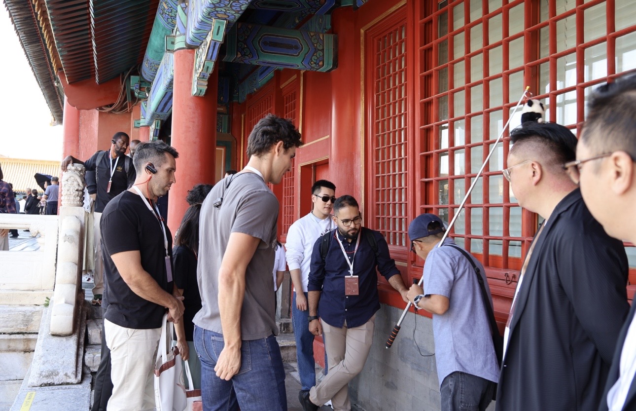 交流團抵京首站便來到了故宮博物院,成員們沉浸式領略中國古代皇家宮殿建築群的獨特魅力,在紅牆黃瓦間探尋中華文明的深厚歷史底蘊。首次來華的Saint Louis在參訪後向記者表示:「這裏的建築裝飾與細節令我着迷。比如雕刻的龍鬚,歷史與文化就藏在宮殿的一磚一瓦裏,很難想像古人要完成這樣的建築需要多大工程量。當年在這裏生活是什麼模樣,那時的宮殿又有多熱鬧。」
