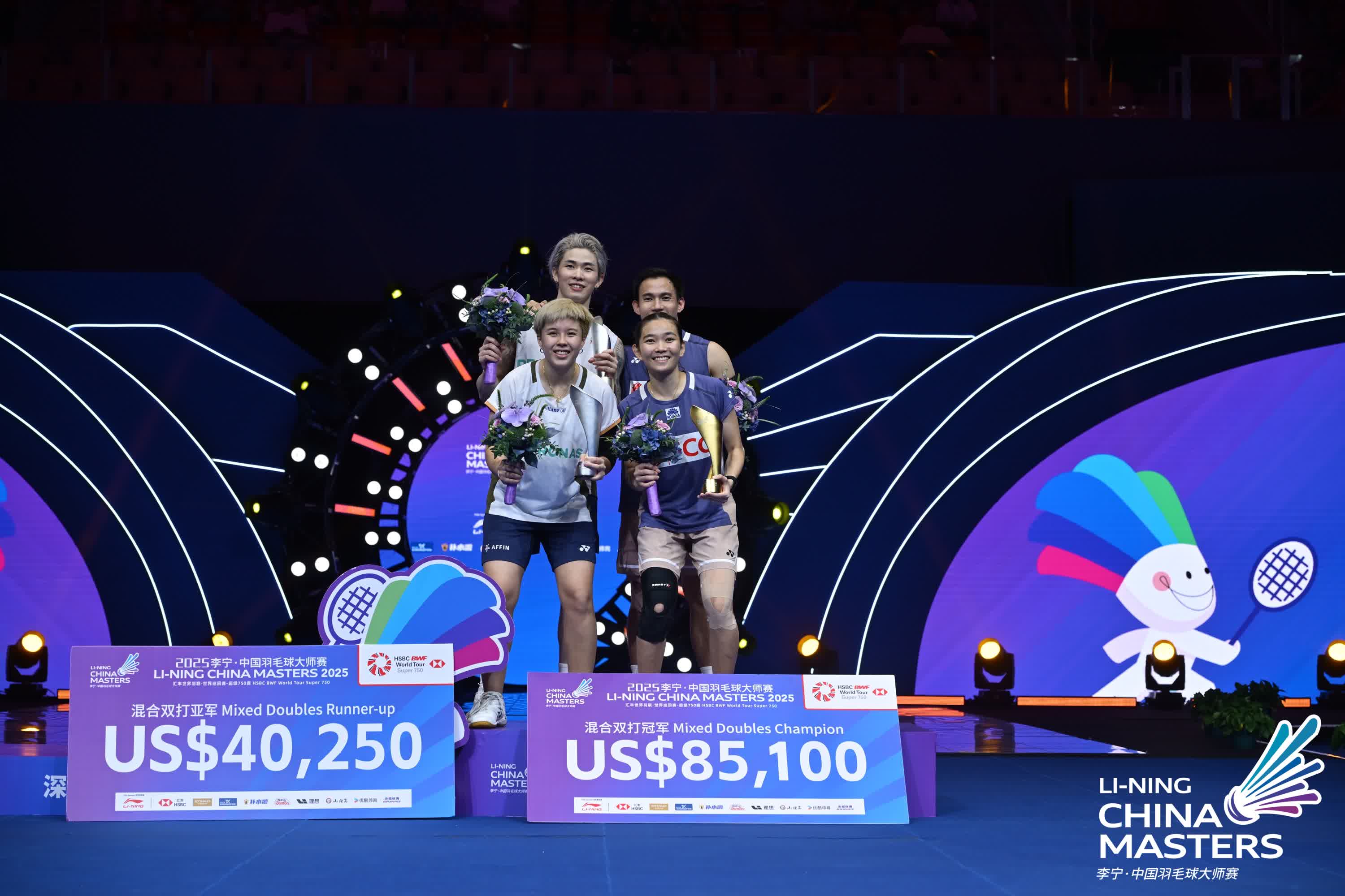 首先進行的大師賽混雙決賽——泰國德差波/蘇皮薩拉以21比8、21比17直落兩局橫掃今年的世錦賽冠軍、馬來西亞組合陳堂傑/杜頤溈,強勢捧起冠軍獎盃。本屆大師賽,德差波/蘇皮薩拉一路高歌,半決賽力克國羽的蔣振邦/魏雅欣組合,決賽中更是火力全開。此次登頂,也讓泰國組合取得了他們的本賽季巡迴賽第四冠。