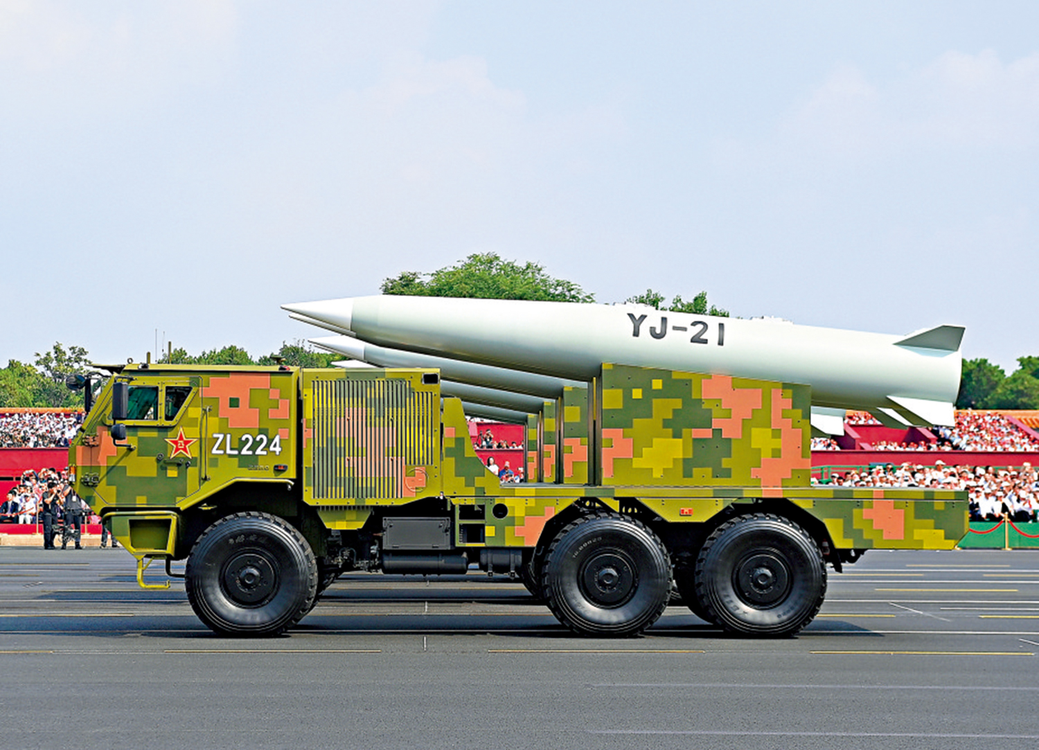 鷹擊-21是全球第一款實戰部署的空射反艦彈道導彈。與同為空射彈道導彈的驚雷-1類似,亦是雙錐體彈頭,鷹擊-21是一款高超聲速導彈,末端突防時速度約10馬赫,垂直攻頂,是不可不扣的「航母殺手」,豐富了解放軍的反航母武器庫。