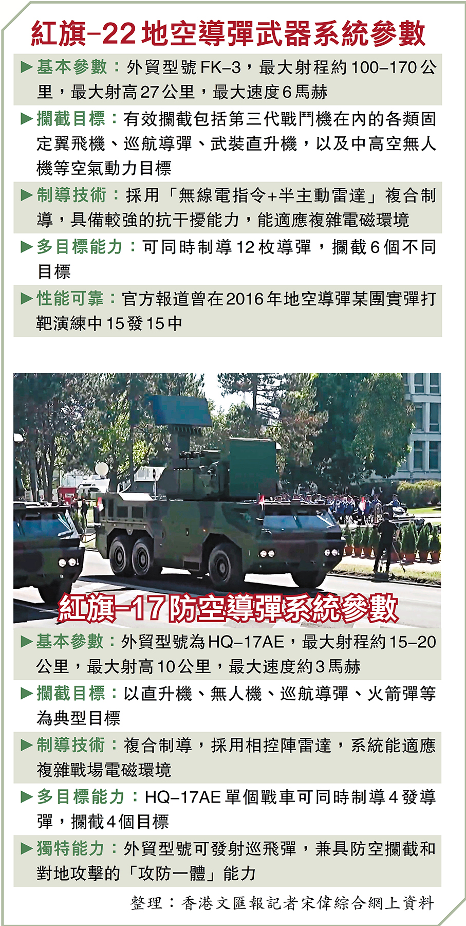 (香港文匯報記者 宋偉 遼寧報道)當地時間9月20日,塞爾維亞在首都貝爾格萊德舉行「團結的力量」閱兵式,紀念塞爾維亞統一、自由和國旗日。據央視報道,中國製造的紅旗-22地空導彈武器系統、紅旗-17防空導彈系統驚艷亮相,給當地民眾留下了深刻印象。近年來,憑藉尖端技術突破、卓越的性價比、智能化體系化和靈活的合作方式,中國防空裝備成功打開全球市場,客戶遍布亞、非、歐以及拉丁美洲。本月初,九三閱兵集中展現中國先進武器裝備和強大製造能力,又為防務增長帶來了一波強勁的「廣告效應」。