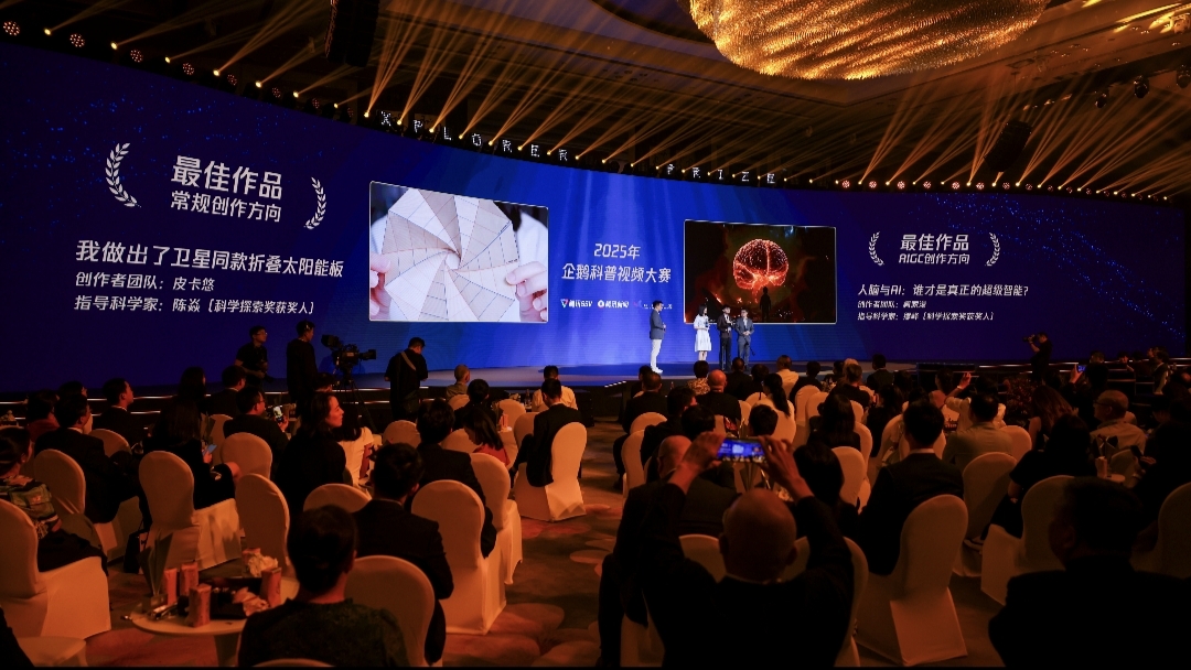 今年頒獎典禮上,「企鵝科普視頻大賽」成為獨特風景。48位科學家出題,邀創作者贏百萬獎金,最終49支共創科普視頻誕生。