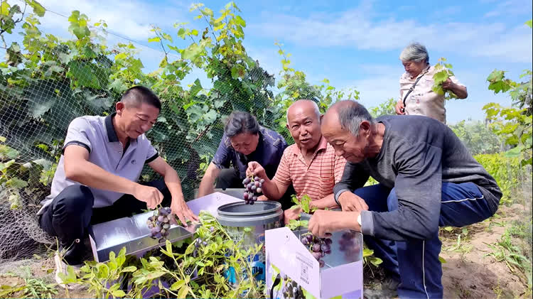 焦尾城村黨支部書記周衛國說:「焦尾城這個葡萄種植有三十年歷史了,是我們『一鄉一業』的重點項目。這幾年隨着名聲越來越響,客戶需求也水漲船高。去年,我們盤活了近80多畝撂荒地改種葡萄,今年已經開始掛果銷售,收益超出預期。等到明年進入盛果期,畝產量將能達到2000斤左右,預計收益將近70萬元(人民幣)。接下來,村黨支部和村委打算以現有葡萄園為示範,發動更多村民加入種植行列。我們還計劃拓展宣傳渠道,探索葡萄深加工,開發葡萄乾、葡萄酒等產品,讓這顆小葡萄真正成為村民增收致富、推動鄉村振興的『金果子』!」
