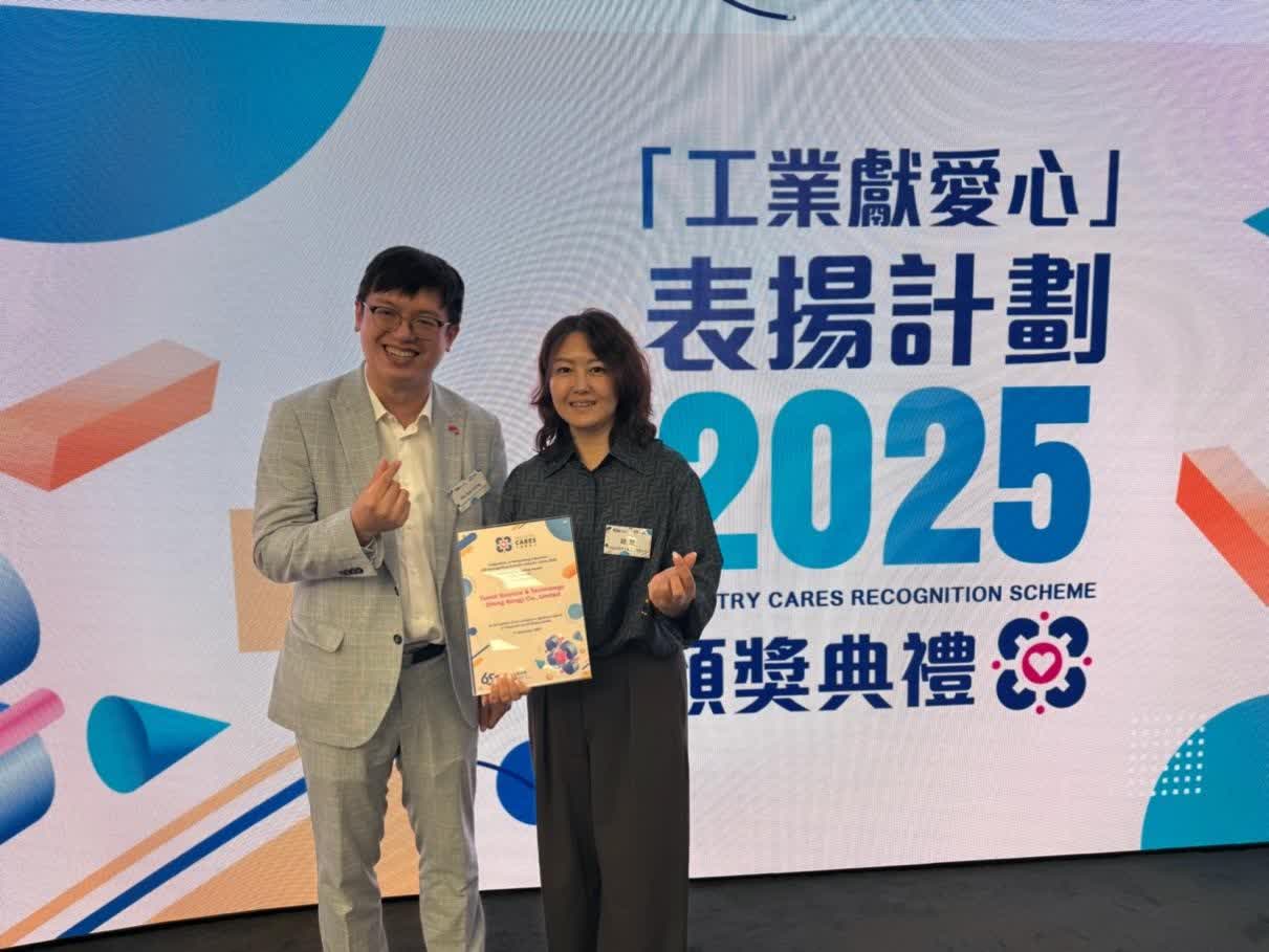 9月17日,香港工業總會舉行「工業獻愛心」表揚計劃2025頒獎典禮,天地科技股份(香港)有限公司(以下簡稱「天地香港公司」)憑藉對社區關懷及青少年發展的傑出貢獻,榮獲中小企組「卓越關懷大獎」。公司副總經理趙晨代表出席並接受獎項。