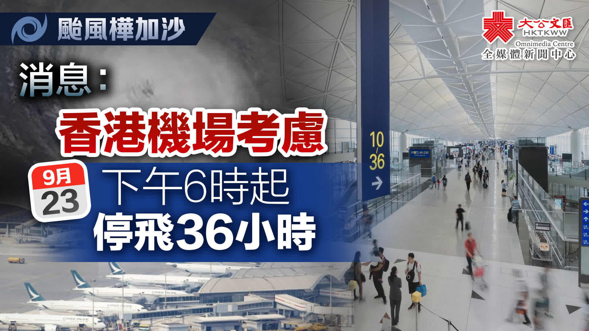 有媒體引述消息報道稱,香港國際機場在考慮將所有客運航班停飛36小時,將是近年來最長的停飛時間。據報,隨着超強颱風「樺加沙」逼近,機場和機管局方面計劃最早從周二(23日)下午6時到周四(25日)早上6時停飛所有航班,預計將於今日正式發布公告。