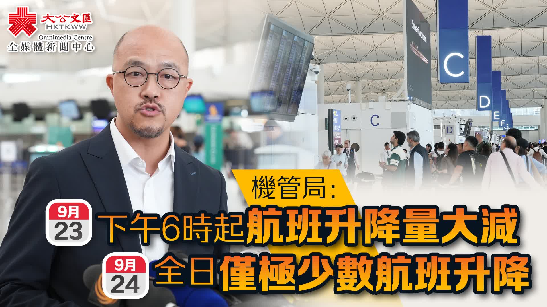 香港機場管理局機場服務總監楊達榮指,預計明日(23日)下午6時後航班升降大幅減少,星期三只有極少量航班可以升降,星期四日間恢復正常運作。由於有大量航班需要調整,市民和旅客應提前確認行程。機管局會在客運大樓提供充電等設施,客運大樓的商店會繼續營業,部分會24小時運作。機場關懷隊將出動,向旅客派發餅乾、水和毛氈等物資,另外亦會啟動電子的士派籌系統。他強調機管局和機場同事已經作好準備,嚴陣以待。