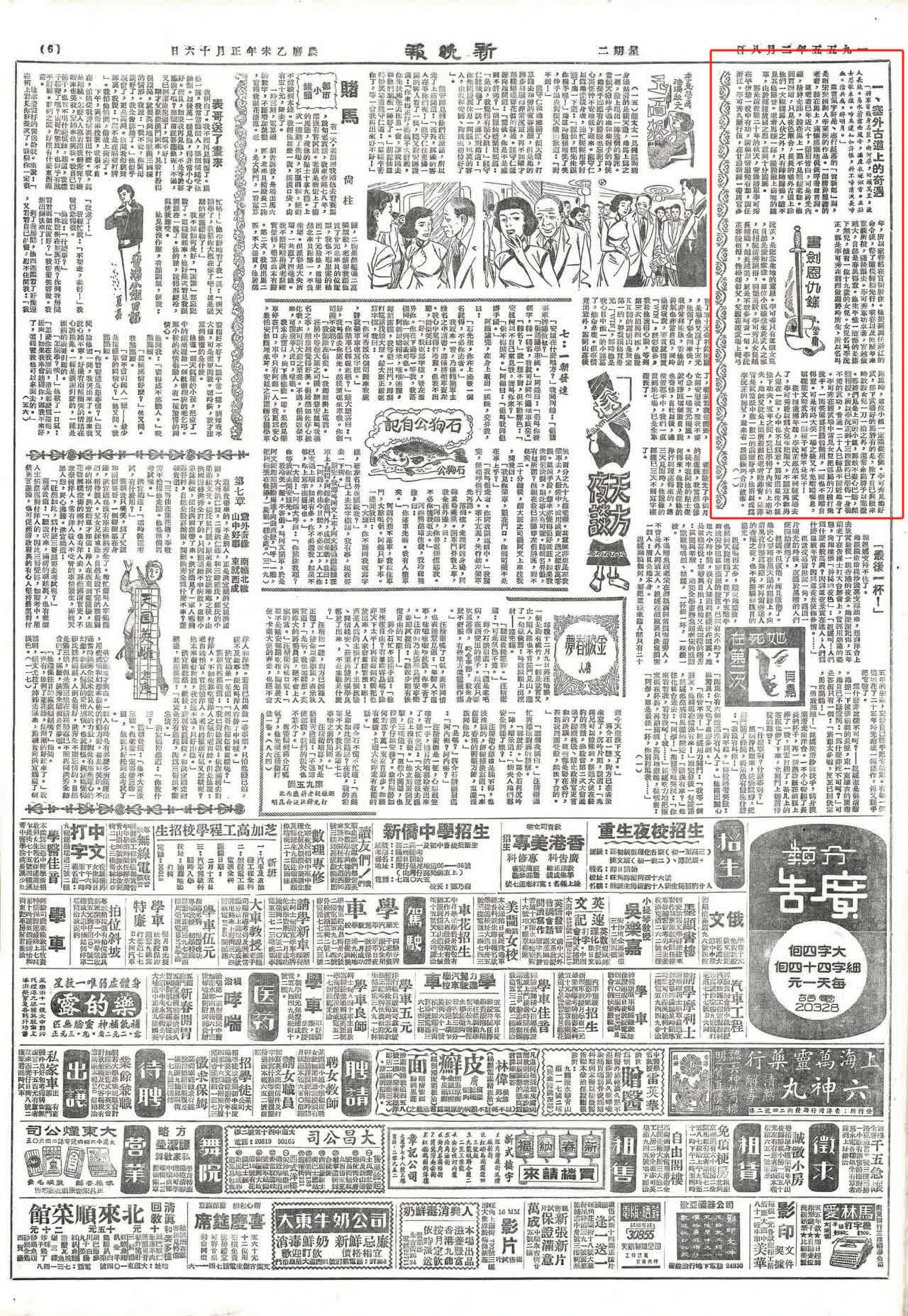 比武結束後第四日,梁羽生的《龍虎鬥京華》在《新晚報》(《大公報》的子報)連載,剛開始刊登,便一紙風行,好評如潮。