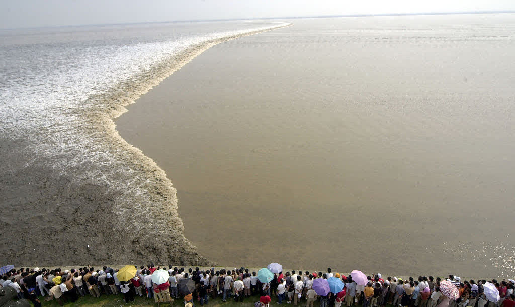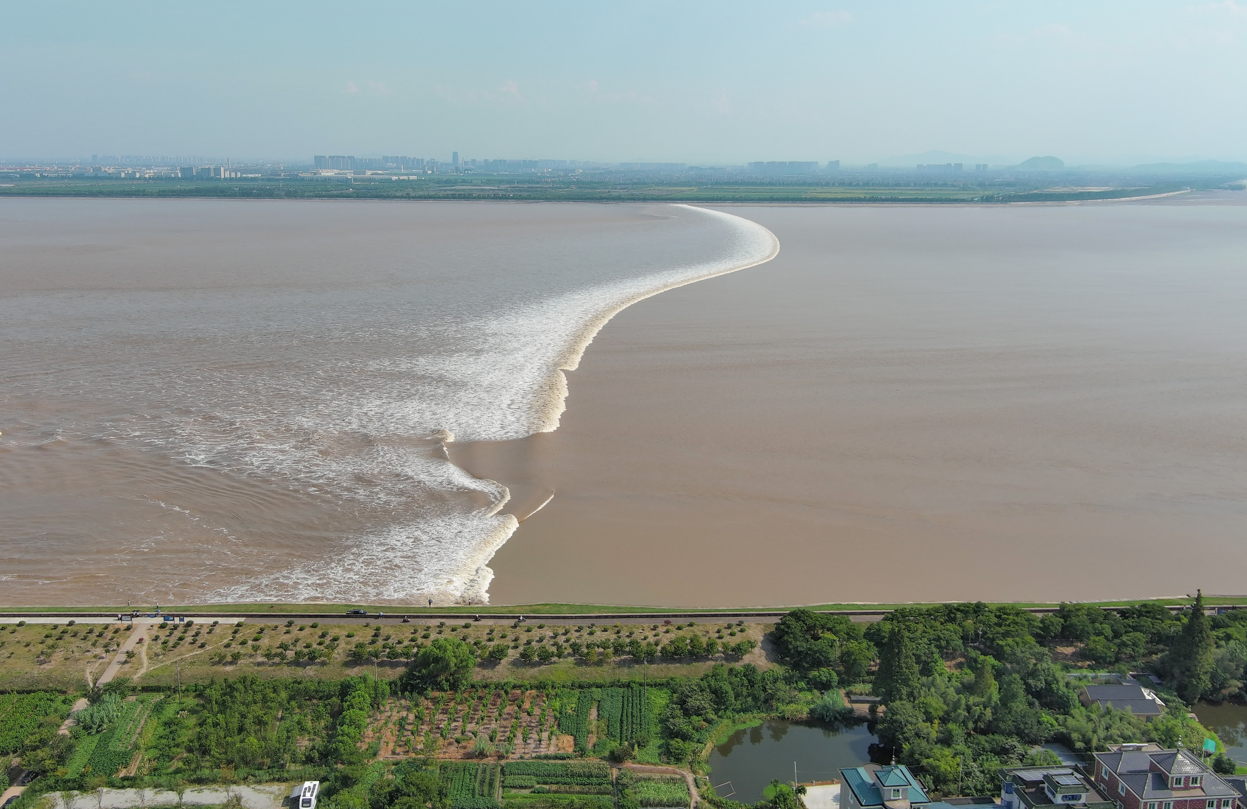 海寧鹽官古鎮是觀賞「一線潮」的最佳地點。每年農曆八月十八前後,錢塘江大潮最為壯觀。