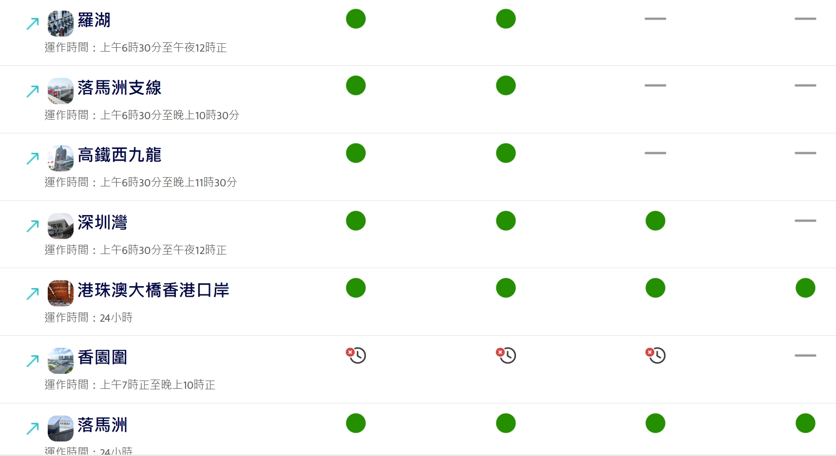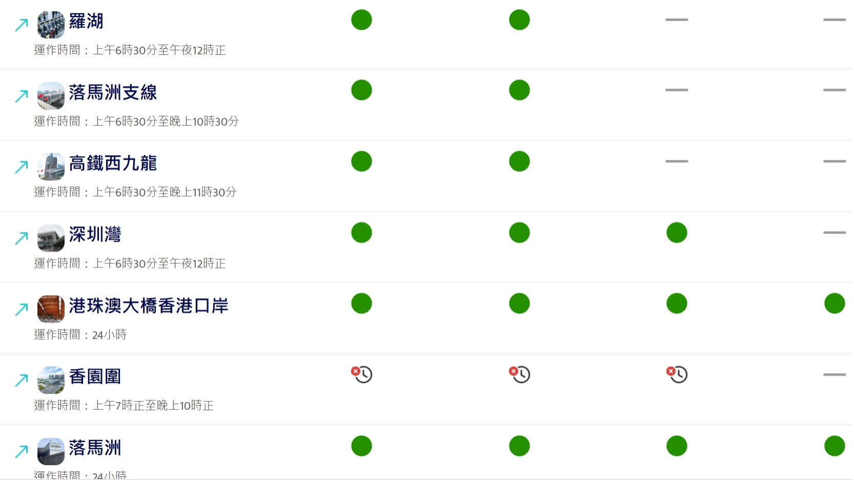 「口岸通」亦會實時顯示各陸路管制站的突發情況,包括附近的重大交通事故。如個別管制站的燈號顯示為「非常繁忙」或發生突發情況,旅客可考慮改用其他管制站,或預留充足時間通關。