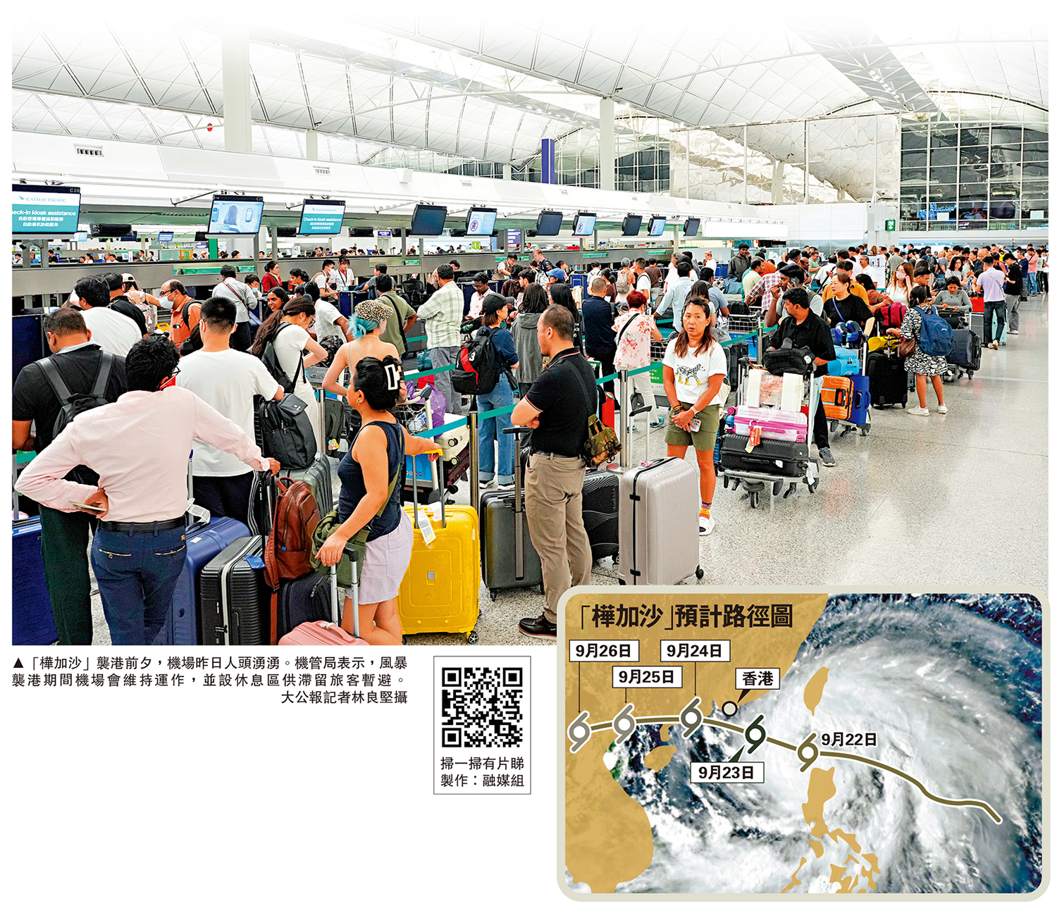 (大公報 記者 盛德文)超強颱風「樺加沙」今日強勢襲港,機管局昨日表示,颱風吹襲期間,香港國際機場不會關閉,會繼續維持開放和運作,但預料有大量航班受影響,會設休息區供滯留旅客暫避。