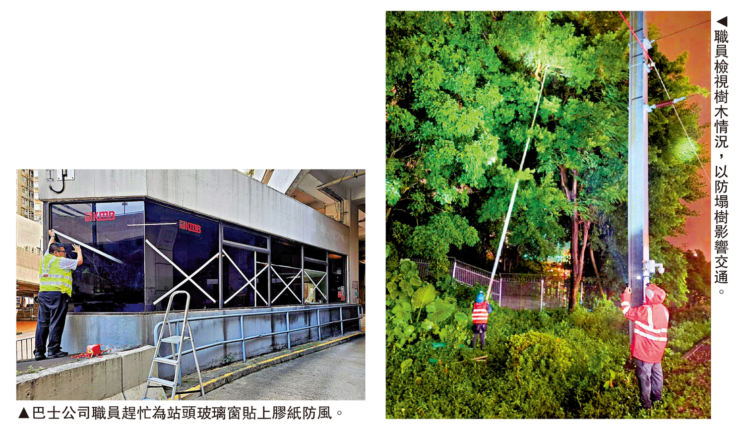 九巴及城巴表示,已加強應對,做好防風措施,包括加強車廠防風防水浸措施、加固巴士站設施、預先制定風暴前後的服務安排等。巴士公司會在掛風球前適時加強服務應對乘客需求,之後會有序暫停服務,詳細可留意相關公布。