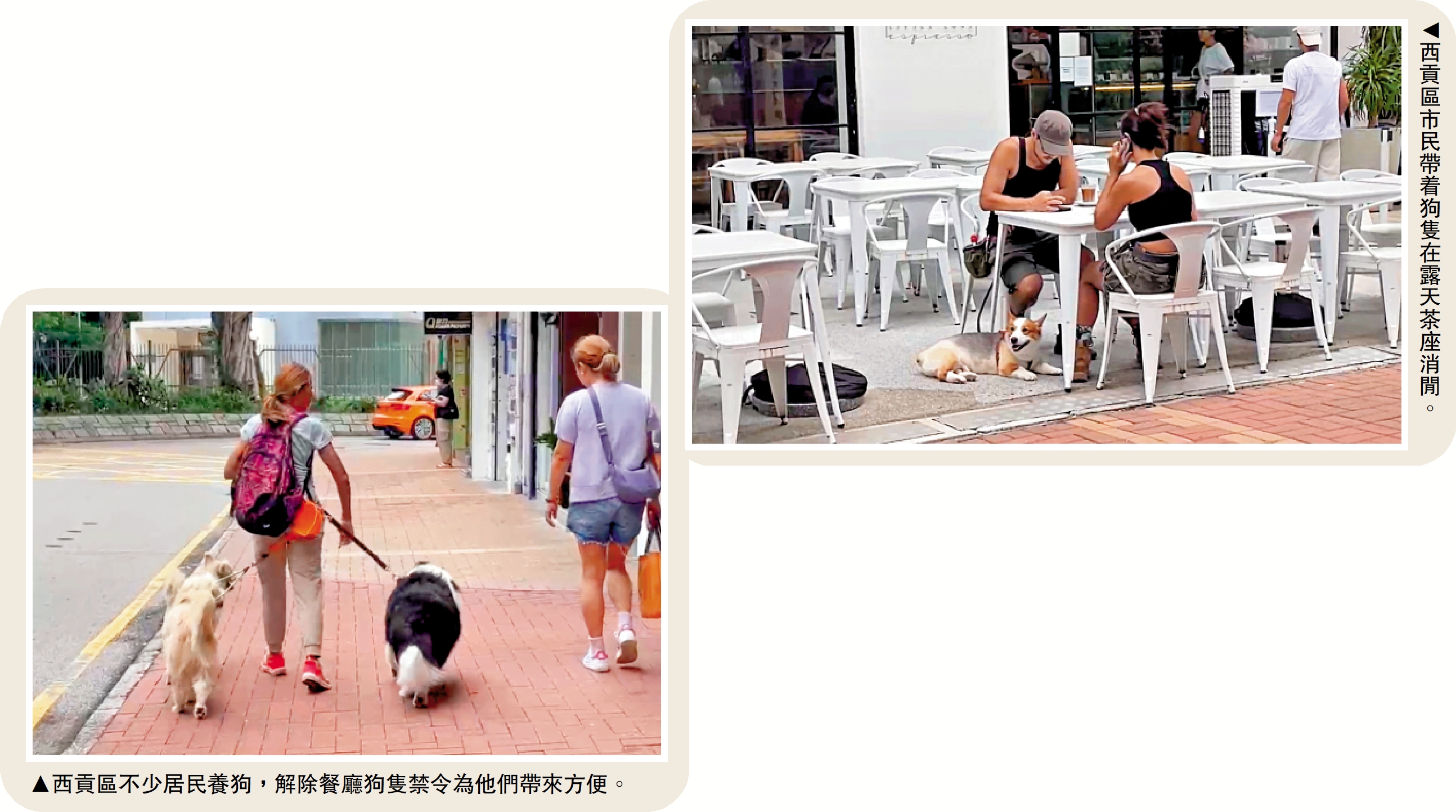 西貢區村屋眾多,除了居民養狗,假日更不乏遊客帶同愛犬到西貢食海鮮或到海濱長廊遛狗。西貢大部分食肆的露天茶座,有不少飼主帶同愛犬用膳。家有三隻愛犬的王先生表示,新措施將解除30年來寵物狗入餐廳的禁令,直言「大方向肯定贊成,實現人寵和諧共處,對養狗人士是喜訊,也能幫餐飲業拓展客源。」不過王先生指即使餐廳領有准狗進入牌照,但會按餐廳室內的情況才決定是否帶狗入內:「首先得看餐廳內部環境窄不窄」,王先生解釋,小型犬通常不願放地上,若抱上座椅,擔心令其他客人反感;其次顧慮侍應服務時的安全,「上菜時萬一不小心碰到狗狗,很容易出問題」。他強調,新政策落地的關鍵在於「客觀環境能否配合政策」,需兼顧人寵雙方的舒適度與安全感。王先生認為,寵物進入餐廳新政是香港寵物友善文化的進步,但政府須詳細列明監管標準、餐廳完善配套設施,養狗人士亦要履行責任,管理好狗隻:「只有各方都做好準備,才能讓新政真正落地見效,而不是變成新的矛盾導火線。」