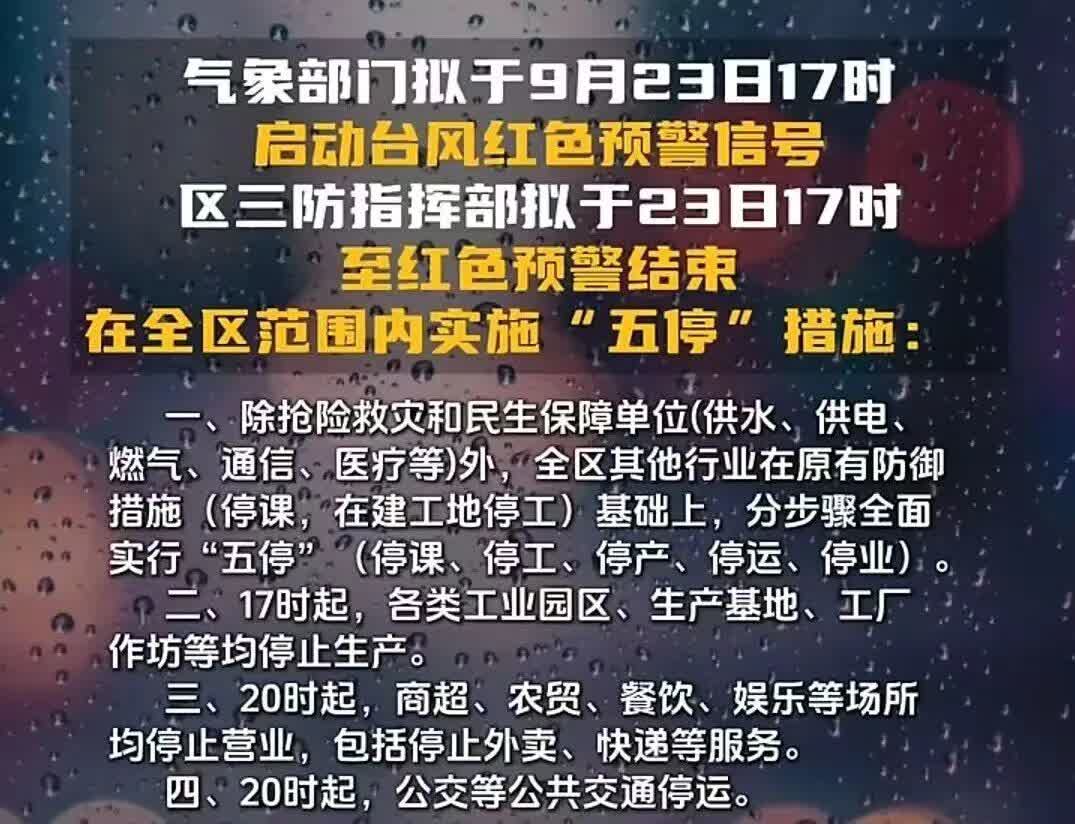 據廣州南沙發布9月23日上午消息,南沙區擬於23日17時起實施「五停」。
