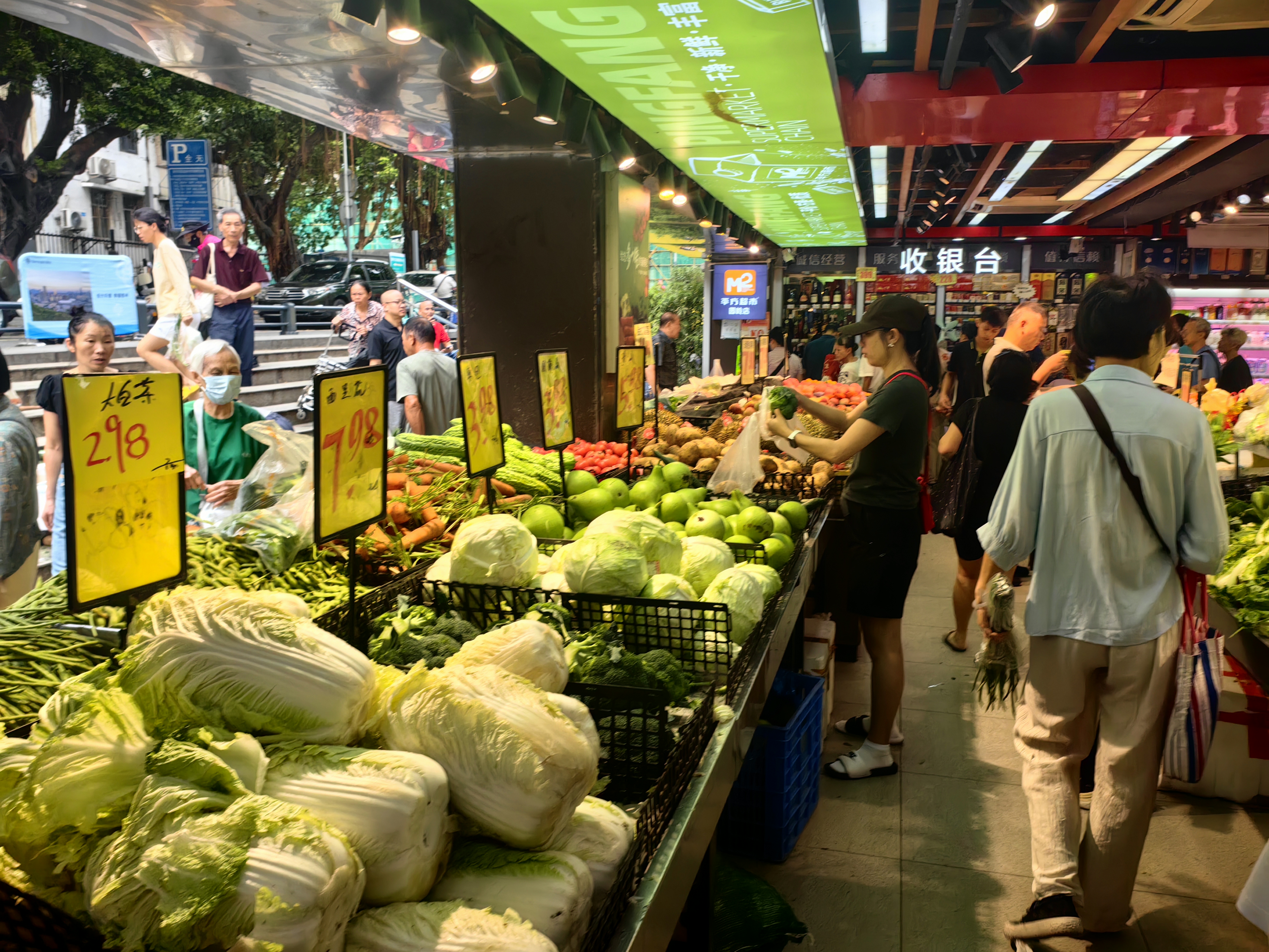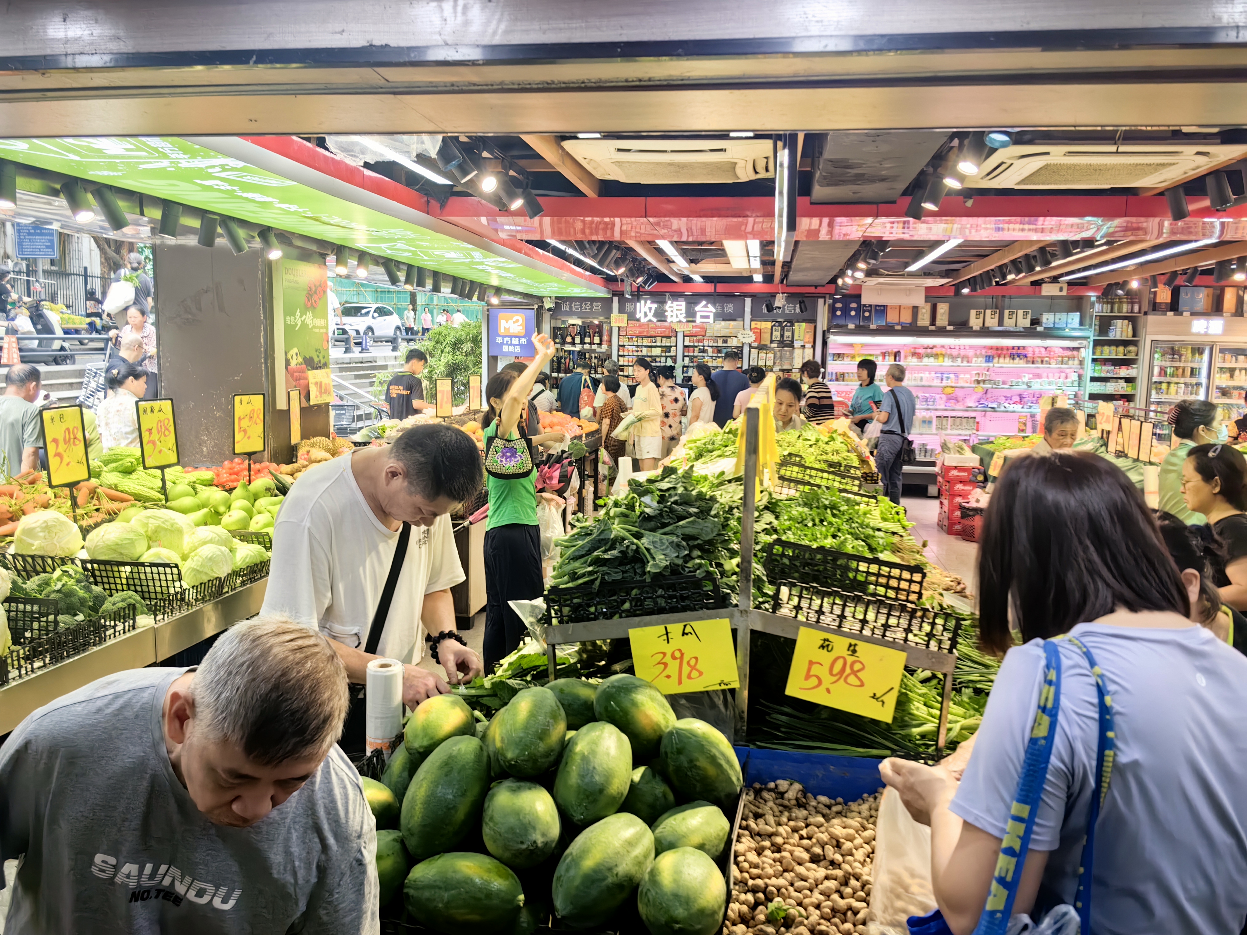 (大公文匯網記者 郭若溪)隨着颱風「樺加沙」臨近,23日上午,記者走訪深圳超市看到大批市民趁着颱風未到之前加緊採購菜肉蛋等生活用品,超市工作人員則表示會正常供貨,保證新鮮蔬果供應。
