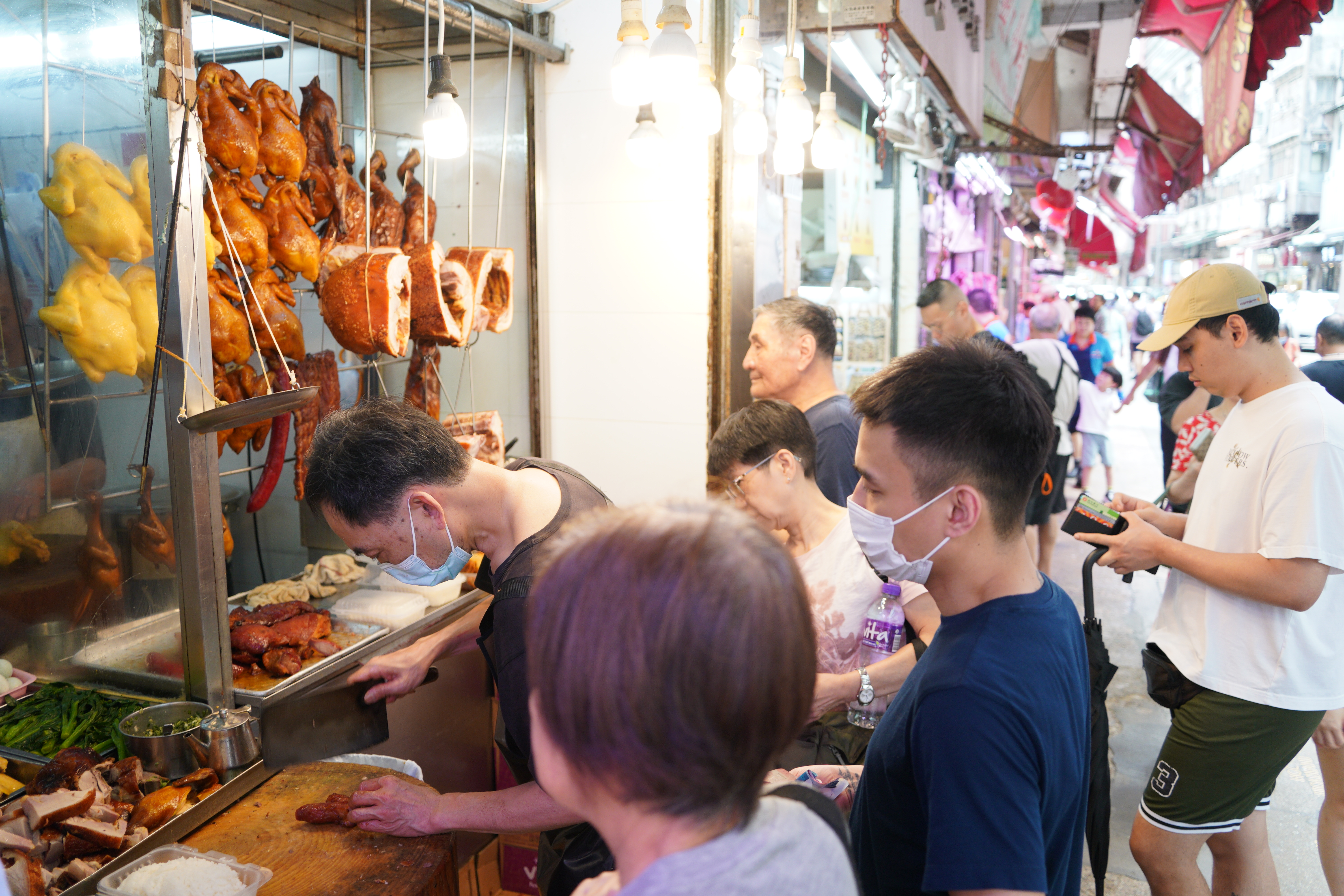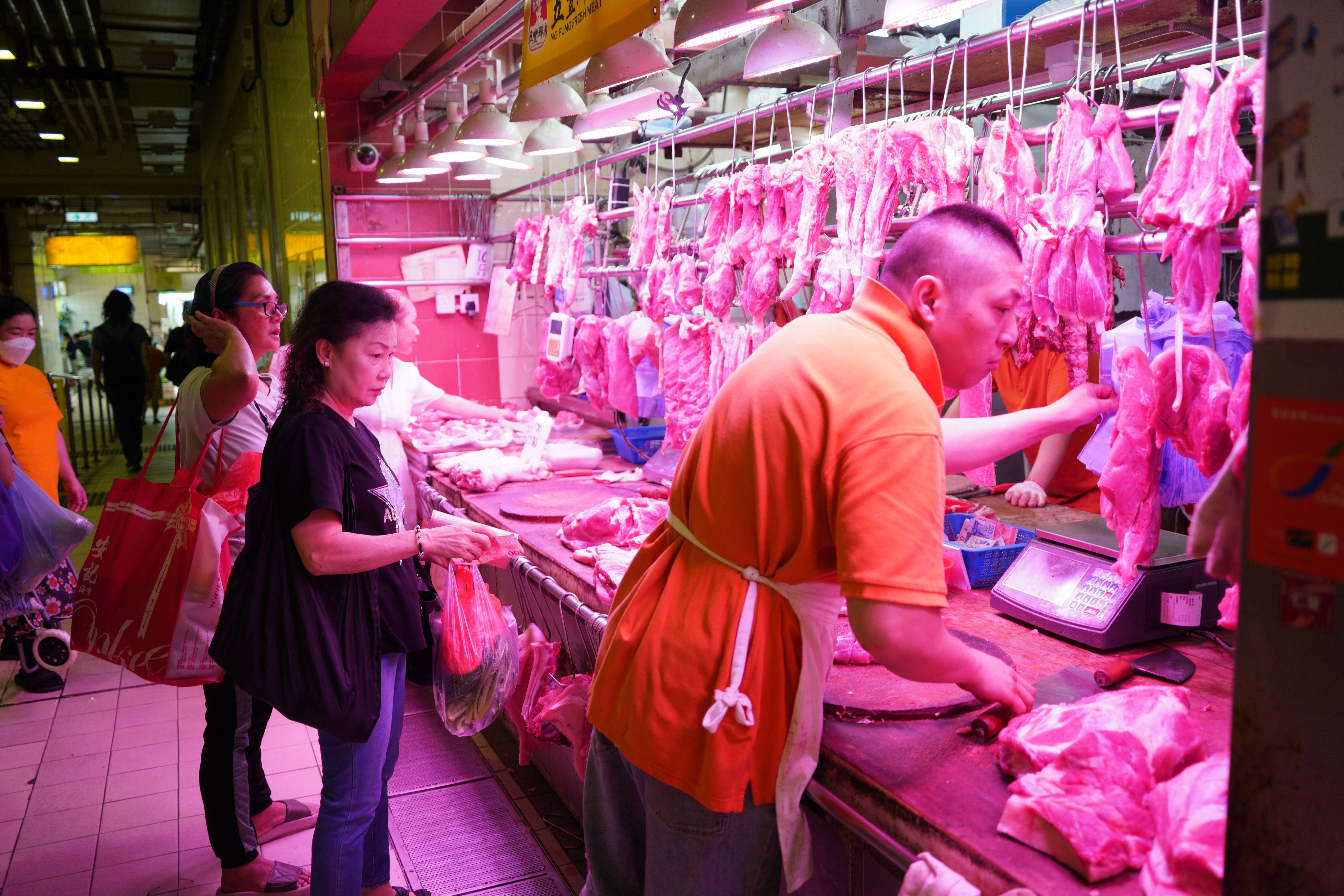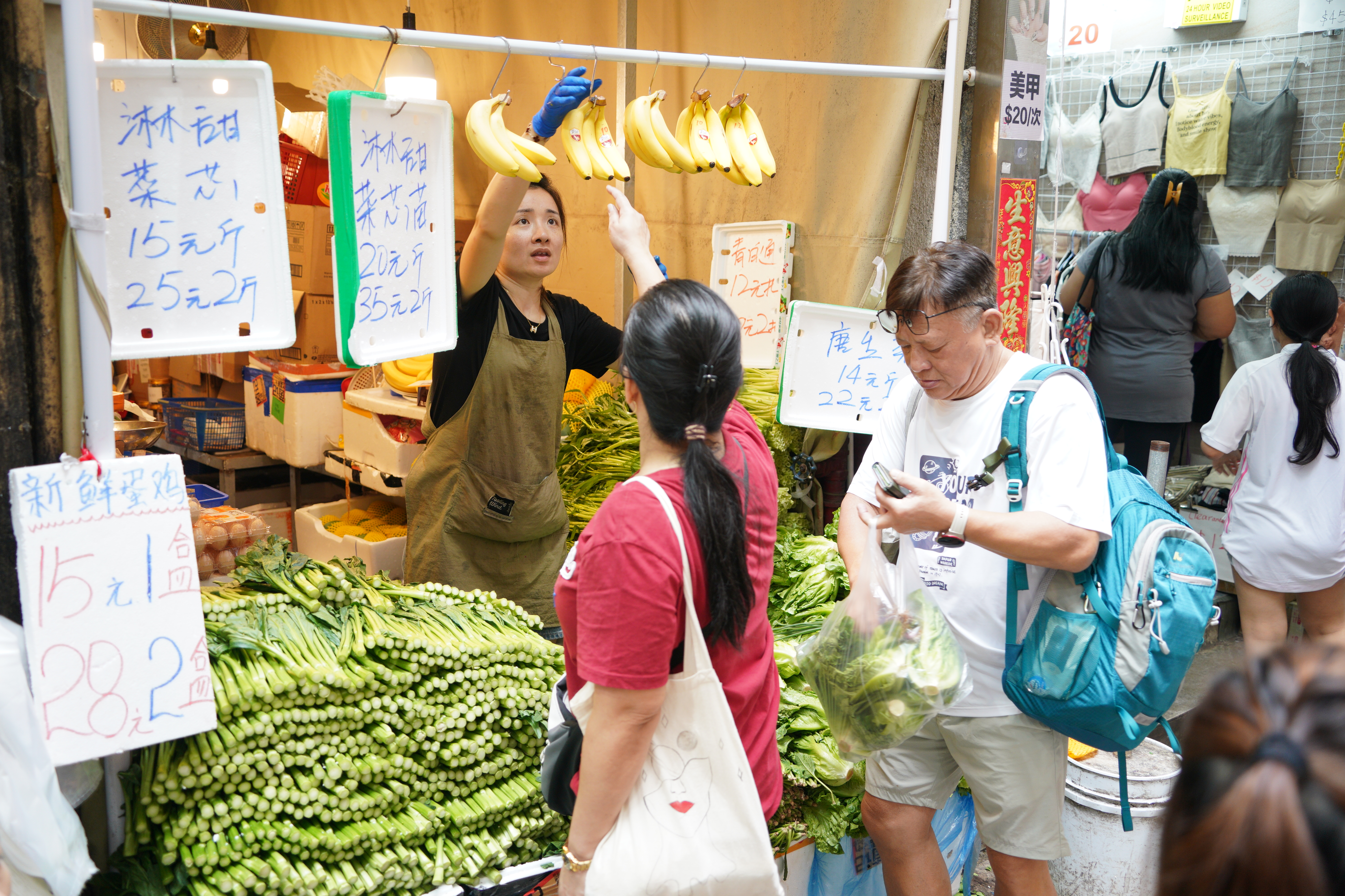大公文匯全媒體報道,受超強颱風「樺加沙」的廣闊環流影響,天文台預料本港今日(23日)稍後天氣開始急速轉壞,並將於今日下午2時20分改發八號烈風或暴風信號。本港嚴陣以待,許多市民昨日(22日)已開始「搶購潮」,在附近街市與超市購入大量物資,包括青菜、飲用水、麵包、即食麵等,為即將到來的「樺加沙」作準備。點新聞記者發現,在白天「搶購潮」下,昨日下午多數菜舖與肉檔已經斷貨,亦有店舖趁颱風天將食材加價至一倍之多,許多市民只能無奈接受溢價。