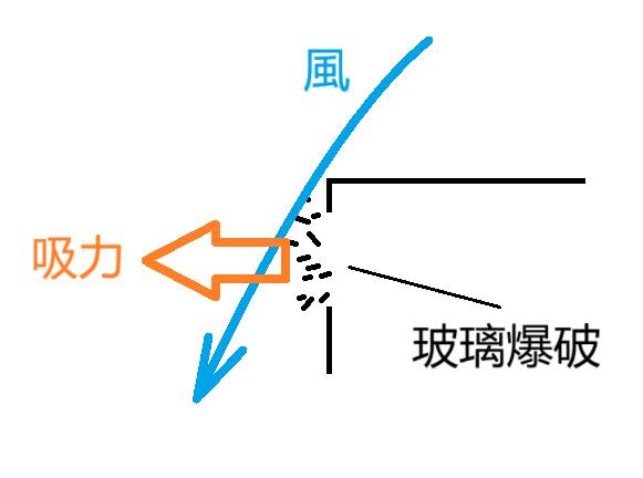 林超英表示,玻璃窗爆破起於內外壓力有很大差別,玻璃從高壓一方向低壓一方爆破,飛向低壓。常出現的情況是「風斜吹向屋角,由於流體動力學的原因,在角的下游處產生很大的負壓,對玻璃窗形成向外的吸力,超過耐壓極限就爆裂,碎片向外飛」,而平時在網上見到的風暴影片中,看到窗簾吹出破窗之外,正好反映這個壓力差距。