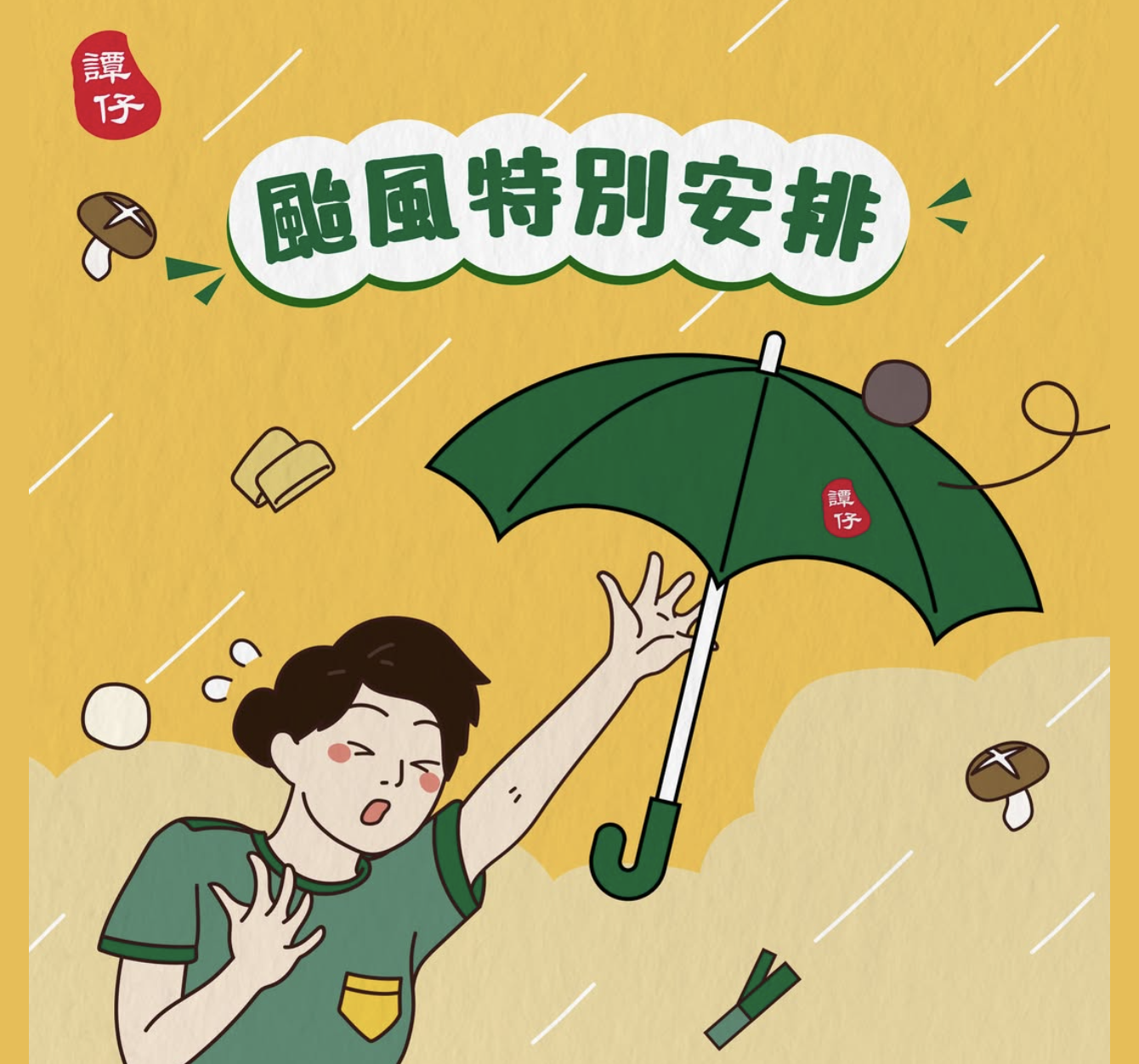 如果天文台發出9號或以上颱風警告,譚仔三哥全線分店營業安排將會有所變動,請食客密切留意。