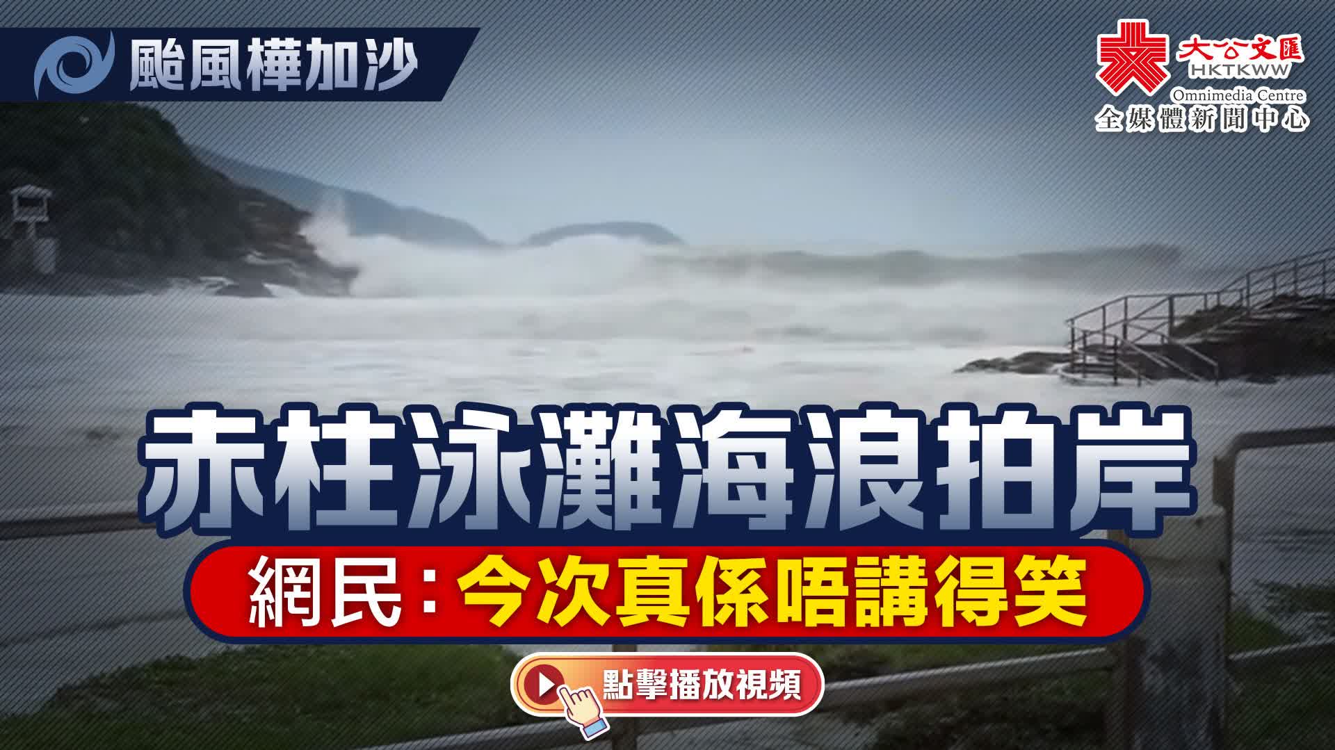 下午1時許,有網民在社交平台發出多段短片,顯示包括赤柱正灘在內多個沿岸地區的海面情況,可見海面除有白頭浪外,更有大浪不斷拍岸並激起浪花。拍片者表示「風仲未到就已經咁」,擔心稍後連泳灘邊的小食亭都會淹沒。