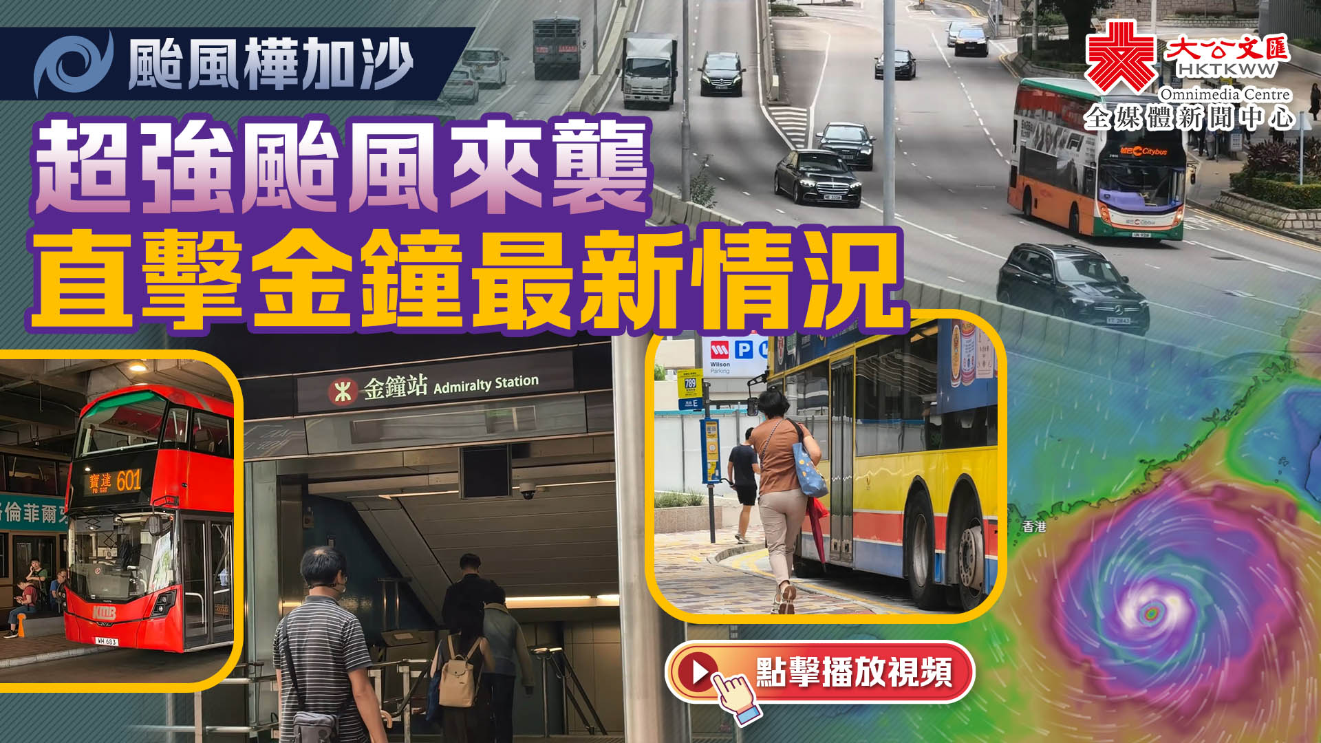 下午14時左右,記者位於金鐘港鐵站外,現場可見,人流大致暢順,許多打工仔正有序進入港鐵站內、或搭乘巴士離開。露天地段亦都算微風陣陣,未有大風,樹枝有輕微飄動。
