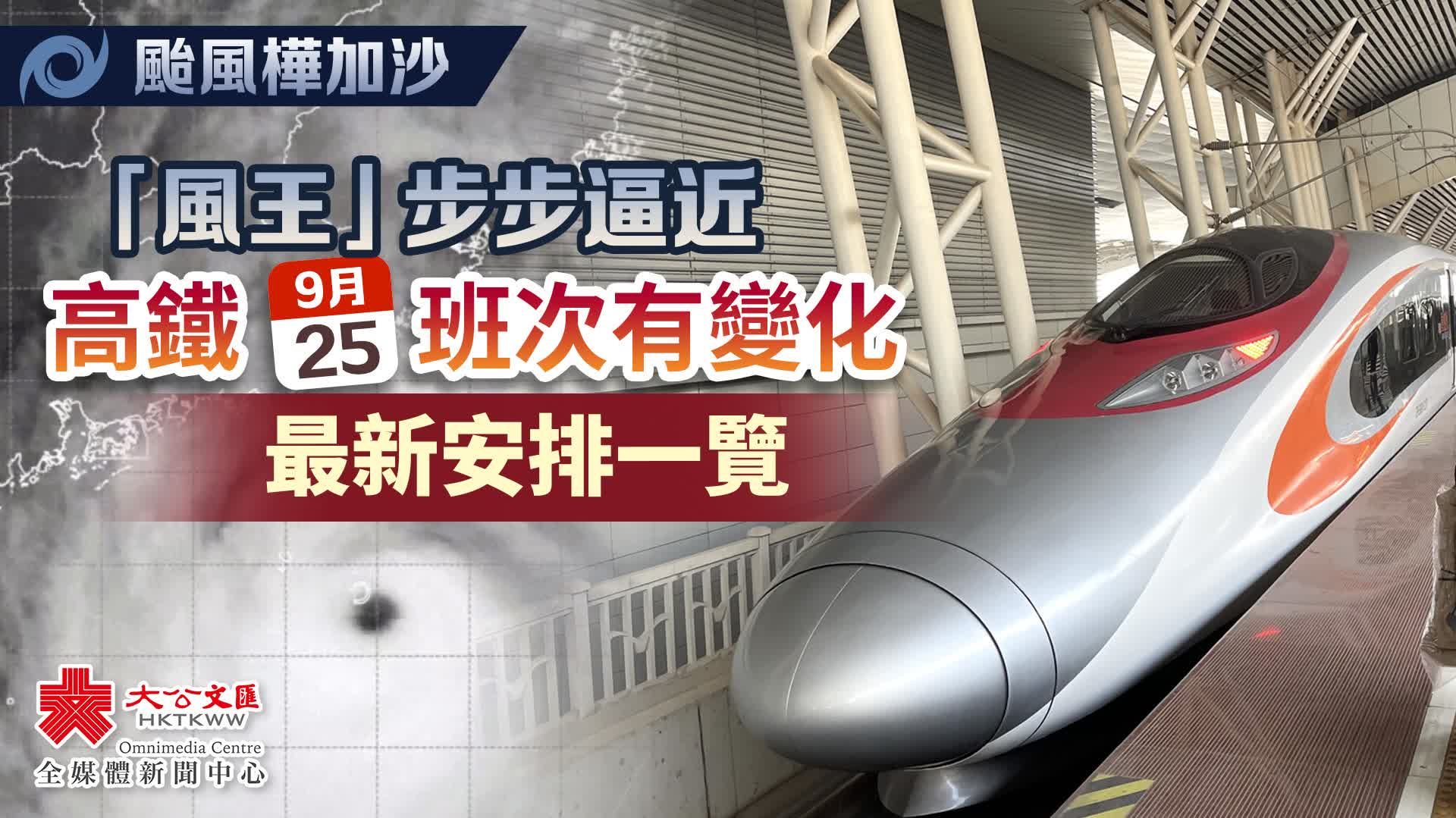 運輸署表示,接內地鐵路單位通報,由於預期天氣情況惡劣,後日(2025年09月25日)下列高速鐵路列車車次取消或始發/終到站更改: