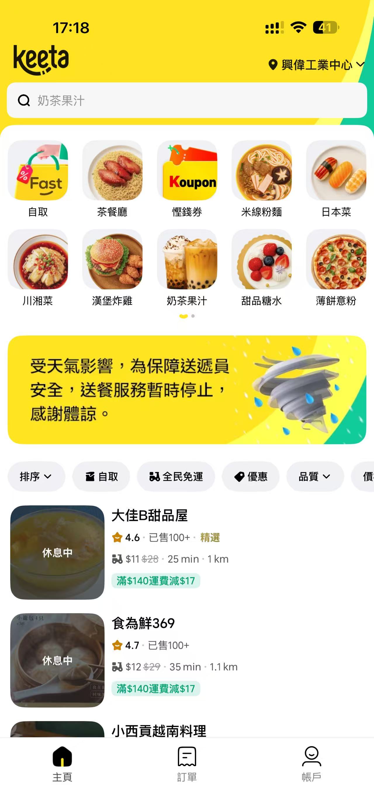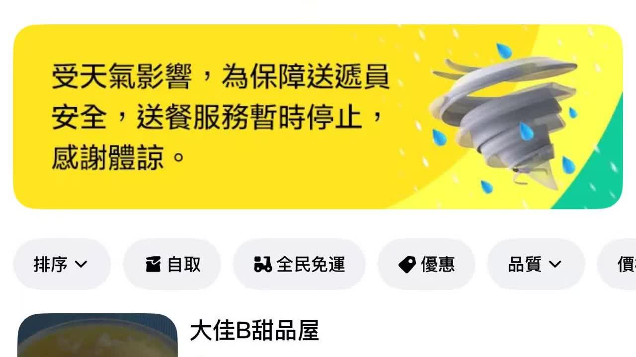 關鍵詞:天文台颱風樺加沙外賣keetafoodpanda