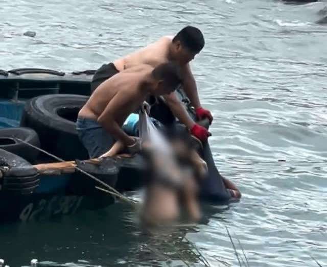 現場畫面可見,一家三口墮海後由當地船家救上船,其後消防人員跳上船隻並對涉事一家三口施救上岸;亦有網友在網上分享救助片段,畫面可見兩名赤膊男子在小艇上,從水中拉起一名女子,當時她面部發黑,全身癱軟,毫無反應。