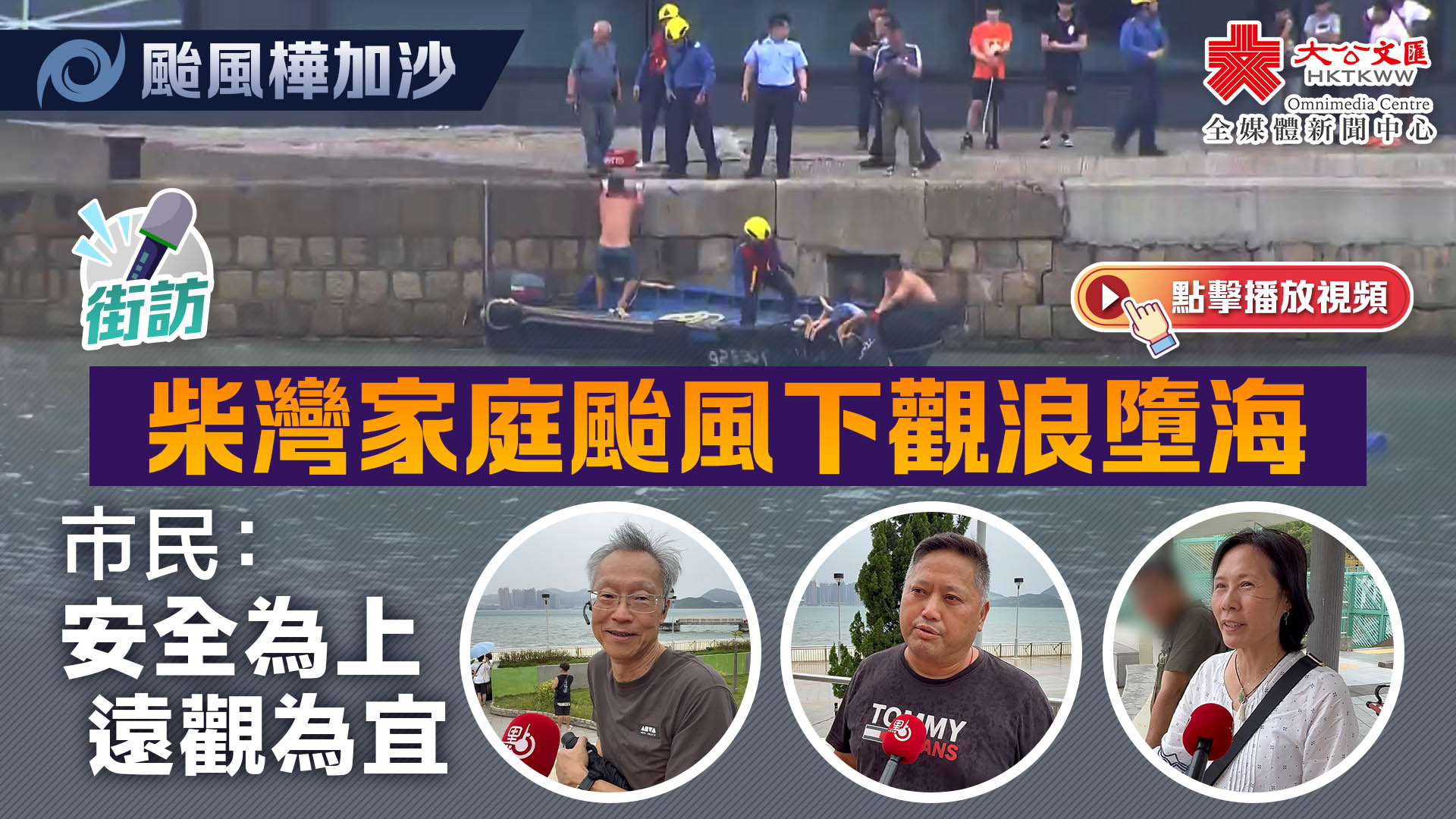 大公文匯全媒體報道,超強颱風「樺加沙」襲港,在港島東柴灣、杏花邨等打風重災區,有不少市民在海旁觀浪。惟今日(23日)下午3時許,一家四口疑在柴灣嘉業街60號對開觀浪期間,母子遭巨浪捲落海,父親立即跳水救人,最終3人由附近船家和趕至的消防救起,送往東區醫院治理。