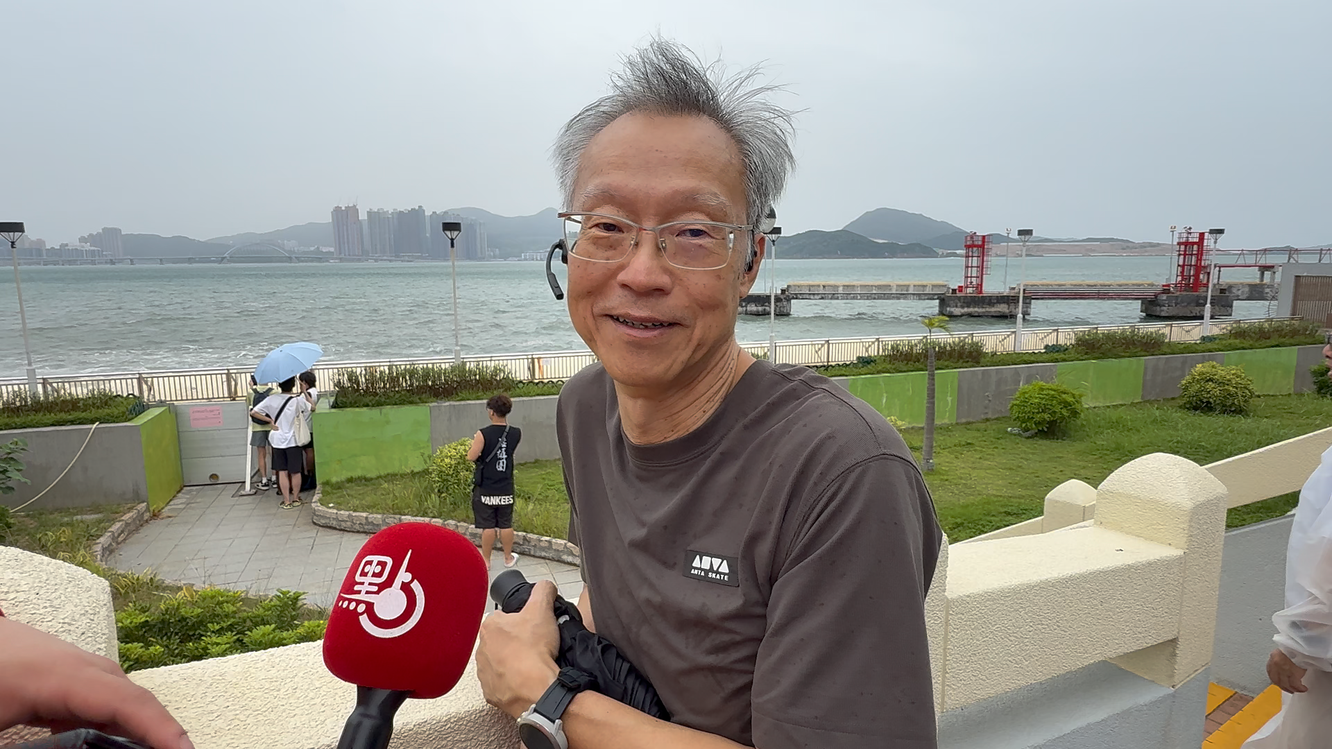 市民陳先生表示,自己在筲箕灣居住了四五年,今次是第一次在海邊「追風」,暫時覺得風力不大,可能因為身處的位置比較安全。他提到太近海的地方已被圍封,現場也有警察勸喻市民離開,但剛剛還見到有小朋友在防波堤上行走,十分危險。