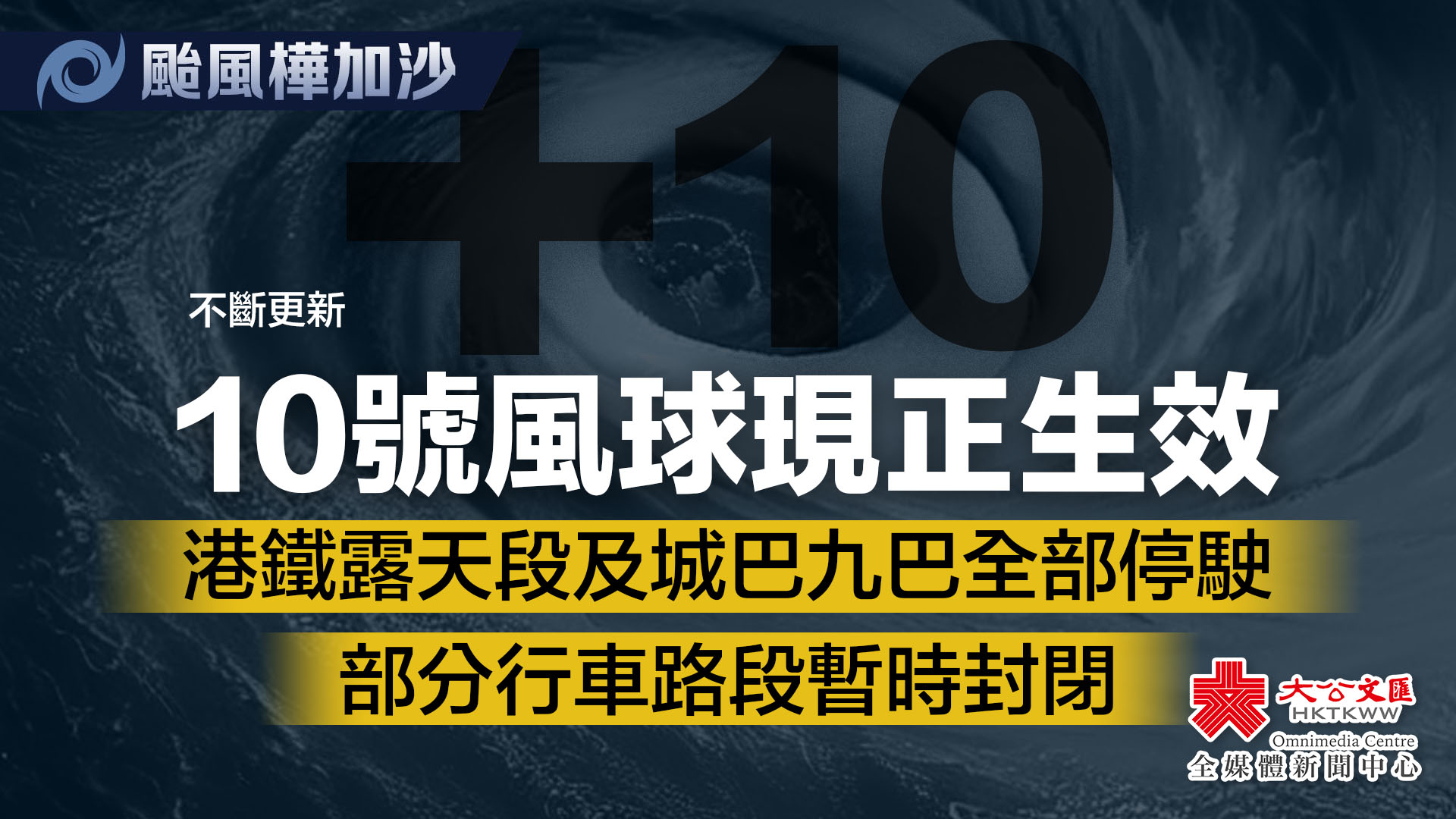 (大公文匯全媒體 記者 裘真)天文台在今日(24日)凌晨2時40分發出十號颶風信號,2時45分發出黃色暴雨警告信號。隨着超強颱風「樺加沙」逼近,其颶風區將開始影響本港。「樺加沙」會於今早最接近本港,在本港南面100公里左右掠過,對香港構成相當威脅,預料十號颶風信號會維持一段時間。