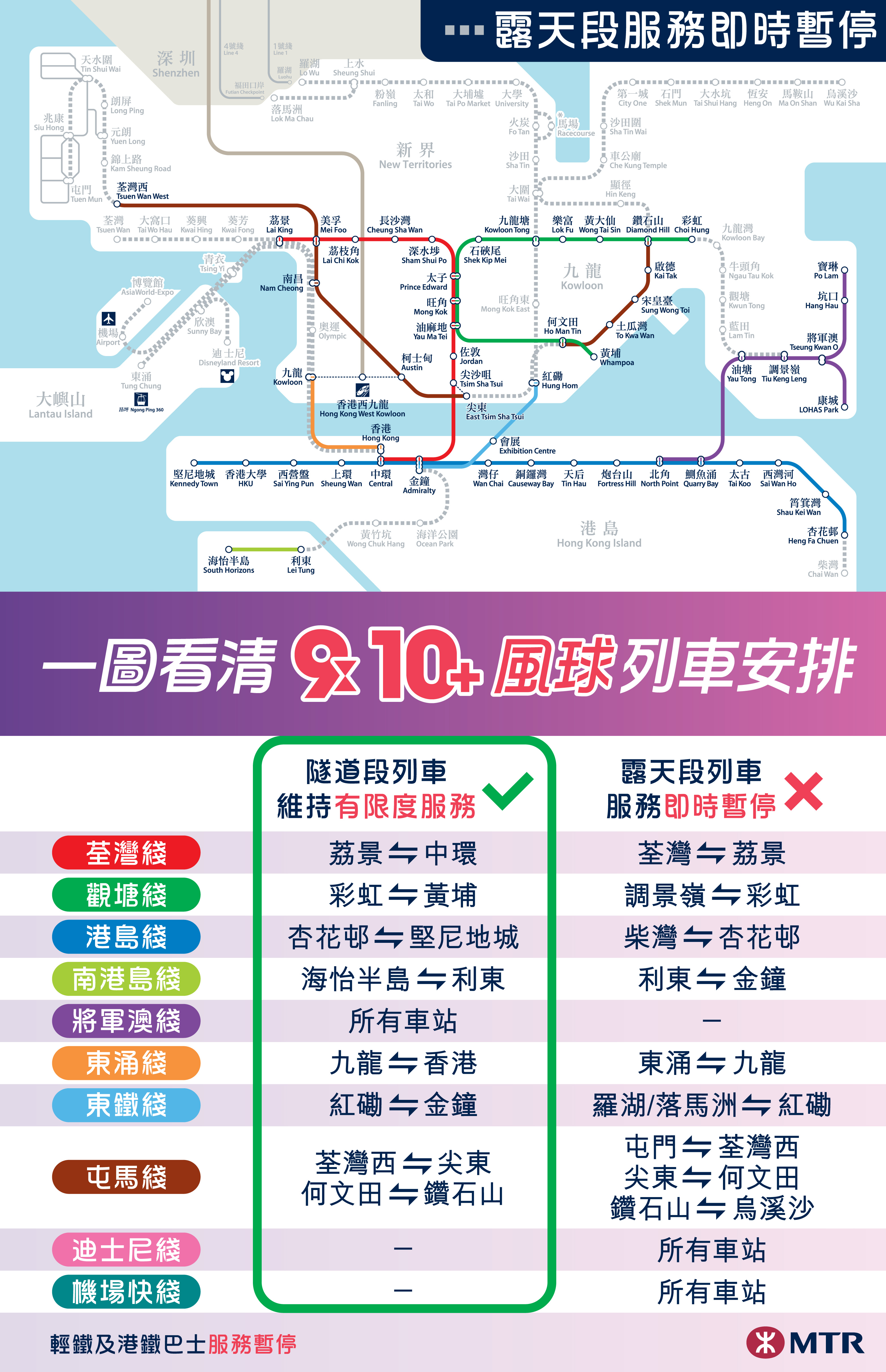 迪士尼綫、機場快綫、輕鐵、港鐵巴士 服務暫停