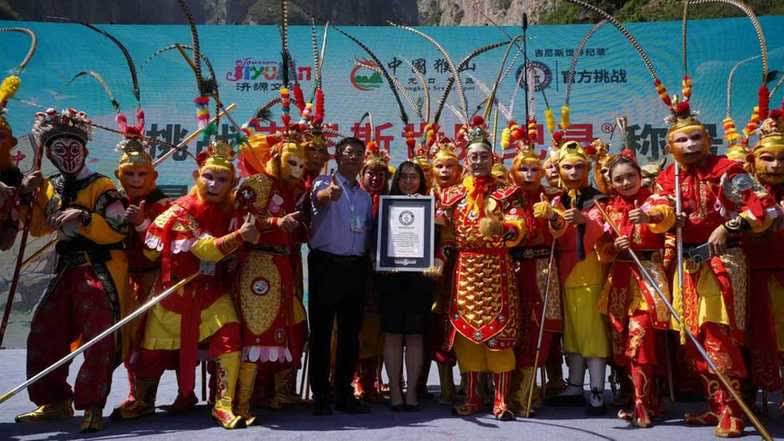 開幕儀式後,五龍口景區桃都山迎來了挑戰吉尼斯世界紀錄活動。眾多「孫悟空」扮演者手持金箍棒,伴隨旋律齊舞。經吉尼斯認證官現場確認,成功挑戰「最多人裝扮成孫悟空聚會」世界紀錄。不少遊客在場觀看,共同形成「萬人共憶西遊」的熱鬧場景。