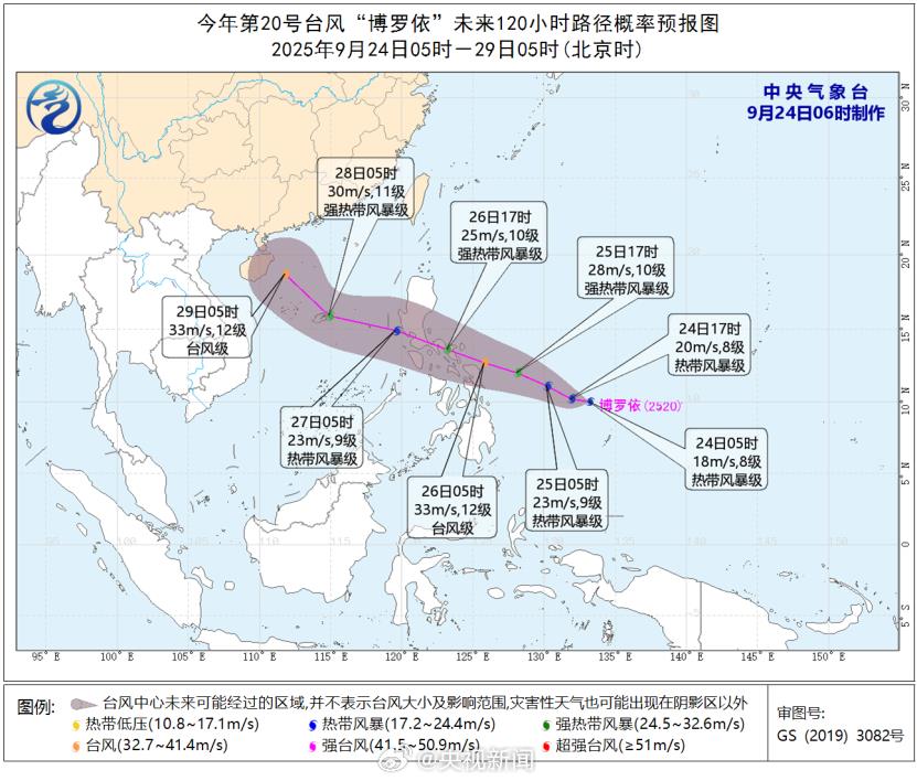 大公文匯全媒體報道,打風「浪接浪」!據中央氣象台最新消息,今年第20號颱風「博羅依」今(24日)早5時在菲律賓以東洋面生成,預計向偏西方向移動,逐漸向菲律賓東部沿海靠近,並於27日進入南海東部海域。這是今年9月南海和西太生成的第6個颱風。