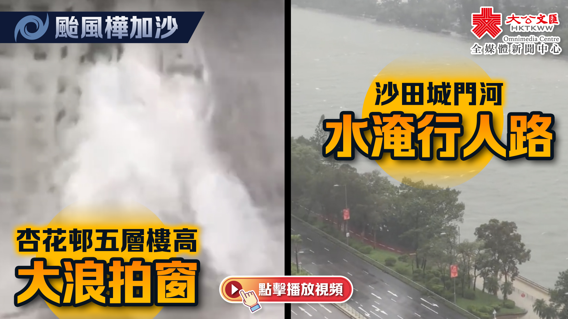 (大公文匯全媒體記者權世平綜合報道)超強颱風「樺加沙」正襲擊香港,天氣持續惡劣,狂風暴雨襲擊香港各區。在杏花邨,海水漲潮疊加暴風吹起巨浪,五六層樓高的浪直撲杏花邨靠海單位。沙田城門河漲水,水已越過河岸,淹沒兩邊人行道。將軍澳亦受暴雨和漲水影響,海面上升,幾近淹沒橋面。其他多區受大風影響,多處發生塌樹。