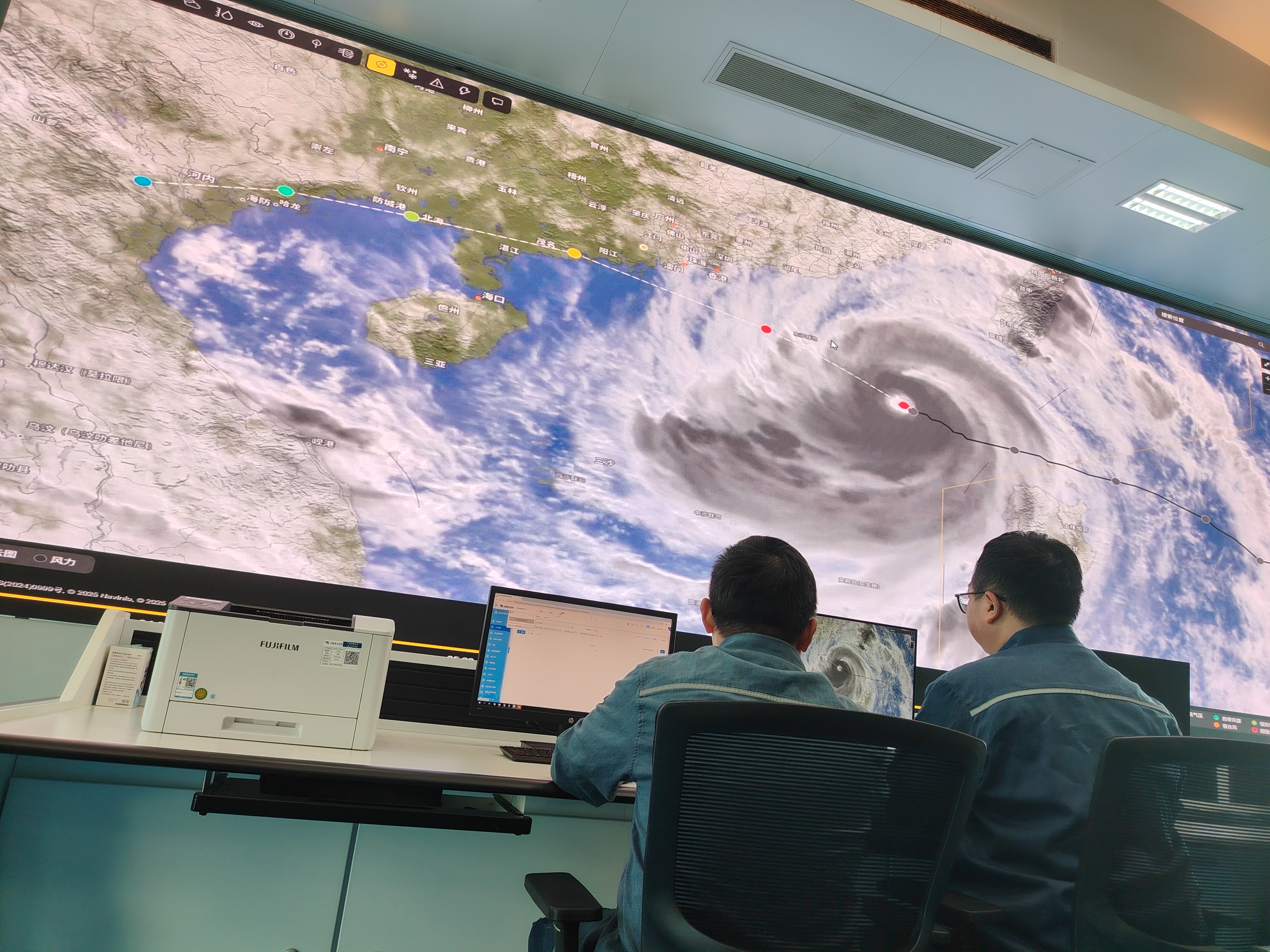 「10千伏朝南線經無人機特巡無異常。」23日,南方電網廣東江門台山供電局指揮中心技術人員緊盯颱風路徑、風速雨量等關鍵數據實時更新的動態地圖,各類智能設備全天候監測,「科技應用是防颱風的關鍵力量。」技術人員勞子弘說,依託數據,技術人員科學研判風險、精準下達指令,指導運維人員提前消除隱患,構建起立體的防禦體系。