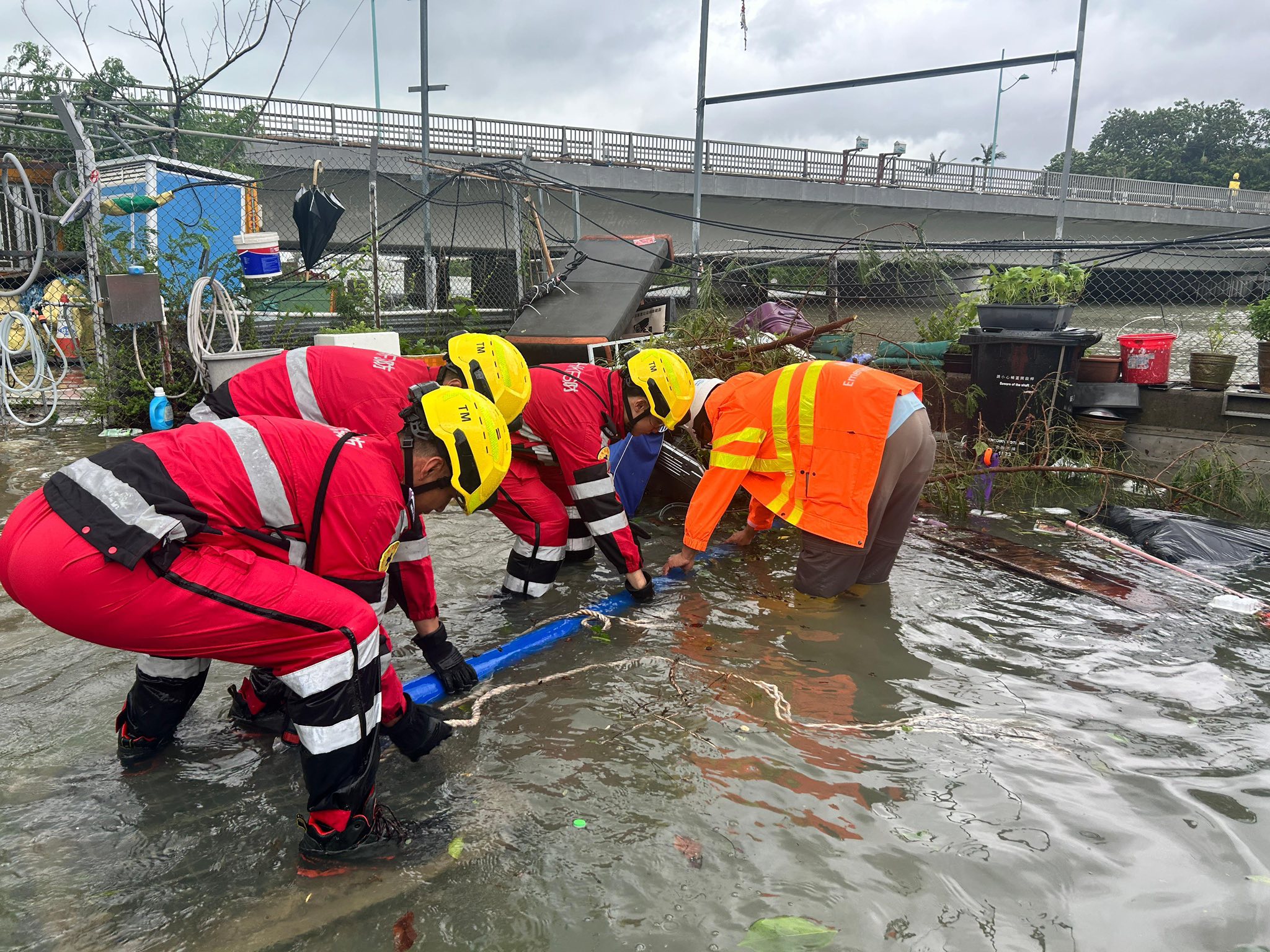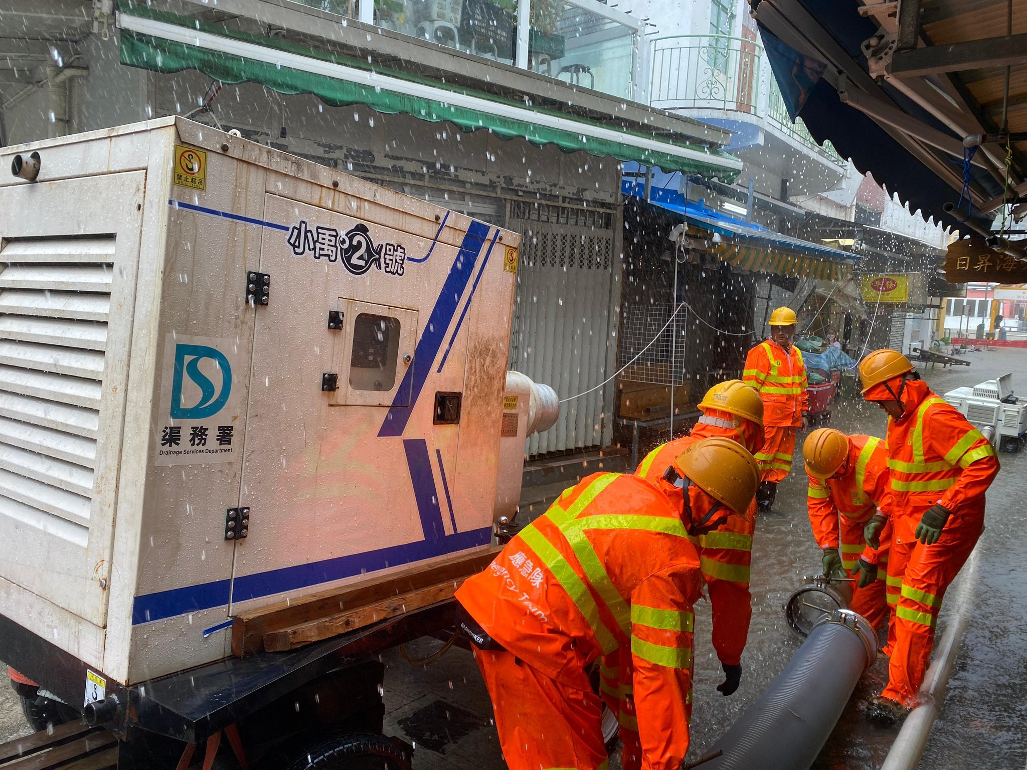 渠務署已根據現場環境派遣緊急應變隊伍到場處理,並調配強力排水機械人「龍吸水」及「小禹」前往現場協助。