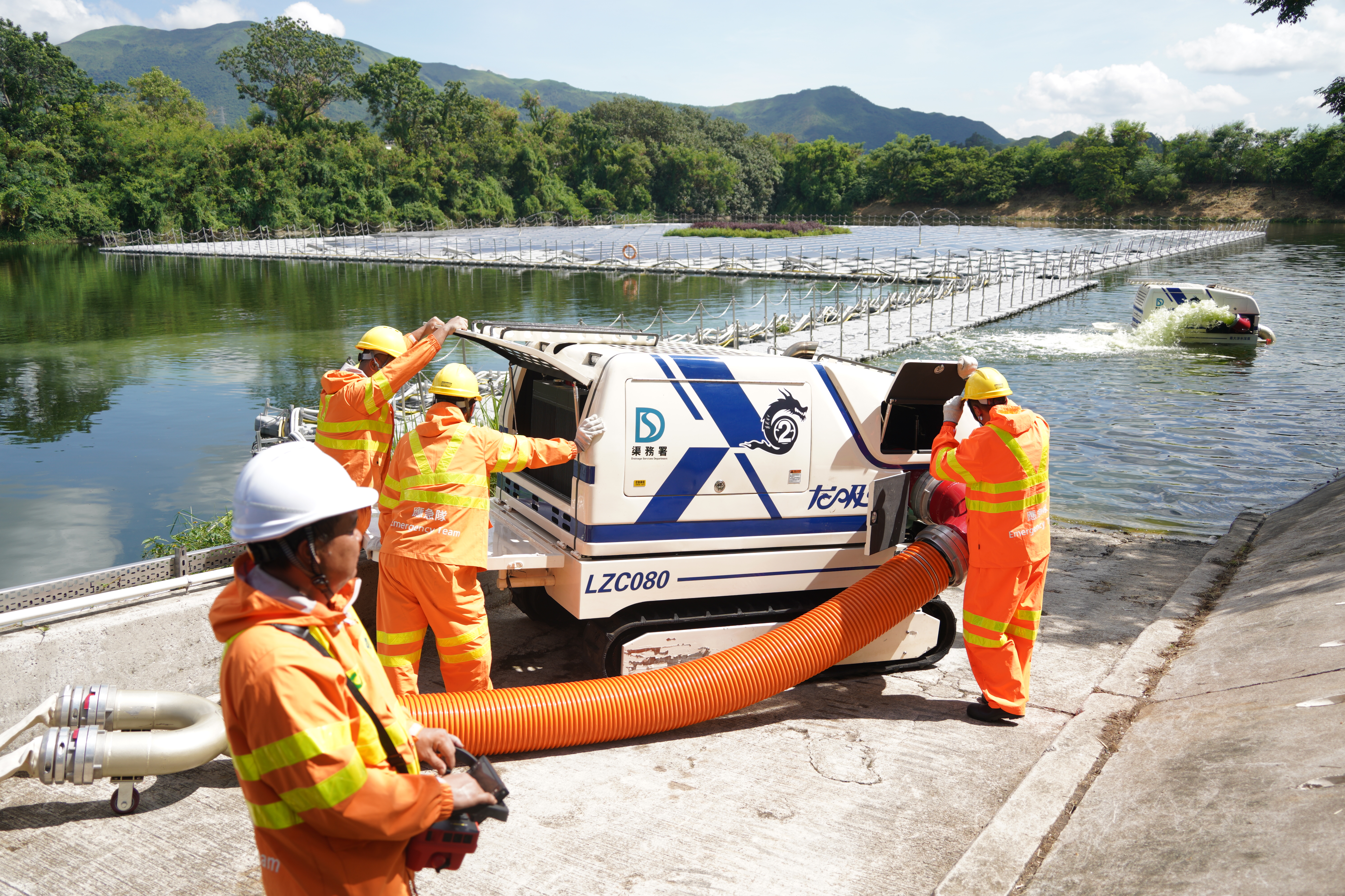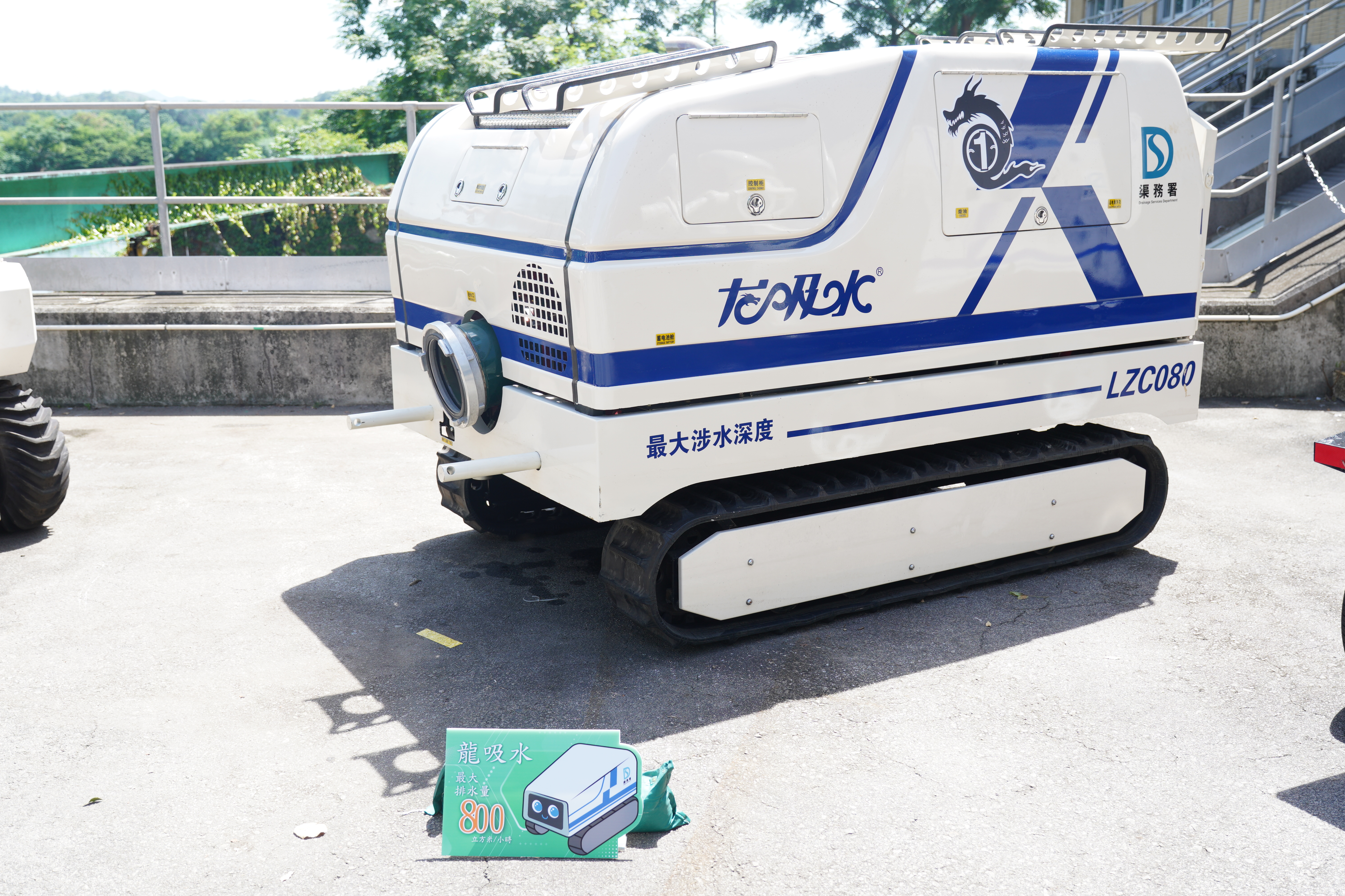 他指出,「龍吸水」在中國福建省製造,是一款無線遙控的強力排水機械人,每小時最高排水量可達800立方米,相當於三分之一個標準泳池的水量。「龍吸水」只需每8小時加一次油,即可長時間持續工作,它的履帶式設計也能應付複雜地形。「小禹一號」同樣採用無線遙控,每小時最高可抽走700立方米的水量,還具有水陸兩用的獨特優勢。「小禹二號」和「小禹三號」的最高排水量則為每小時500立方米。